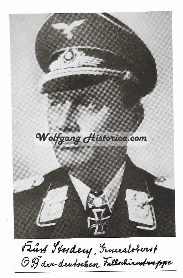 Scarce Postwar Signature of Kurt Student. Kurt Arthur Benno Student (12 May 1890 – 1 July 1978) was a German general in the Luftwaffe during World War II. An early pioneer of airborne forces, Student was in overall command of developing a paratrooper force to be known as the Fallschirmjäger, and as the most senior member of the Fallschirmjäger, commanded it throughout the war. Student led the first major airborne attack in history, the Battle for The Hague in May 1940. He also commanded the Fallschirmjägers in its last major airborne operation, the invasion of Crete in May 1941. The operation was a success despite German losses, and led the Allies to hasten the training and development of their own airborne units.