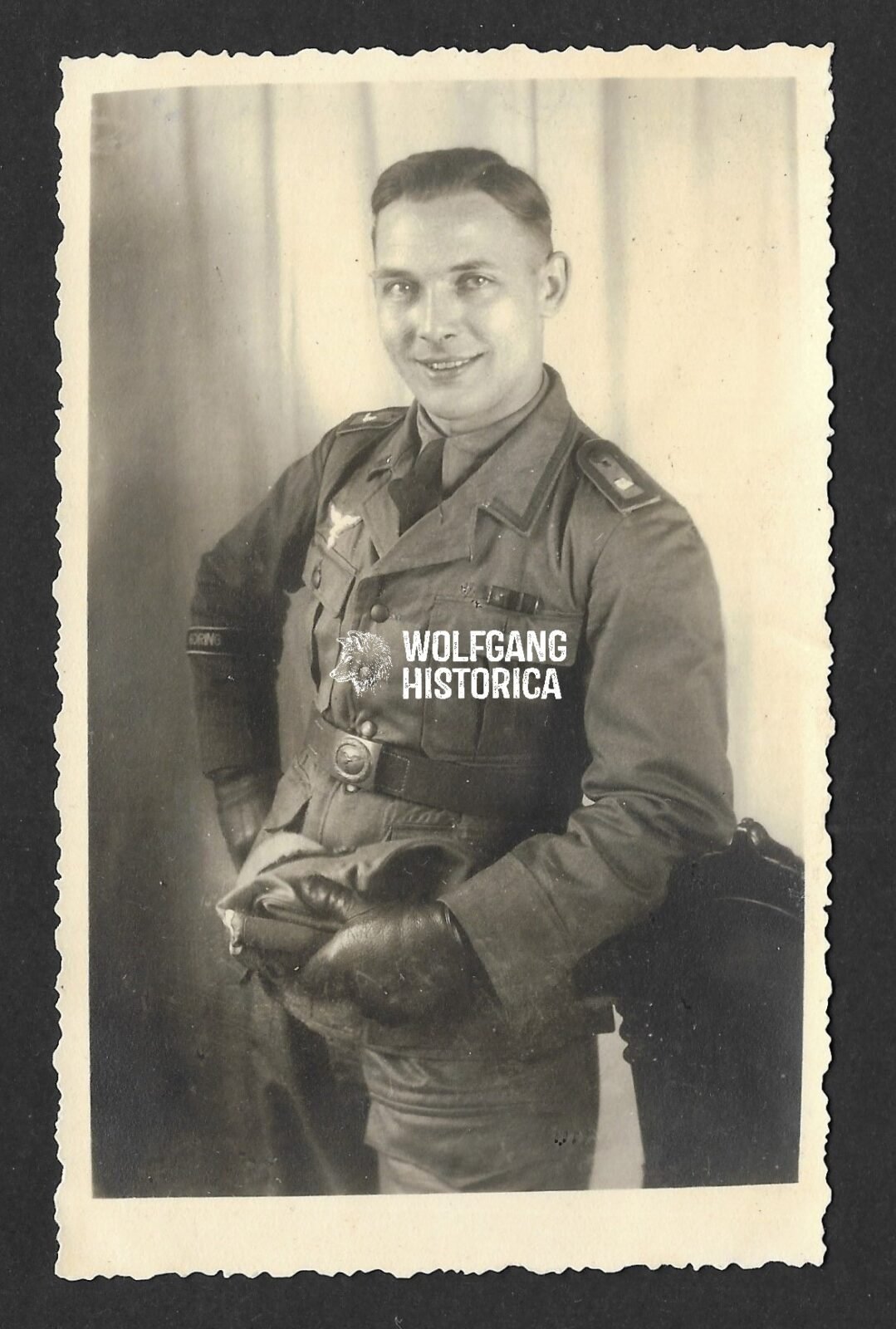 Original Studioportrait of Luftwaffe Hermann Göring Soldier in Tropical Uniform + Cufftitle! Postcardsize.