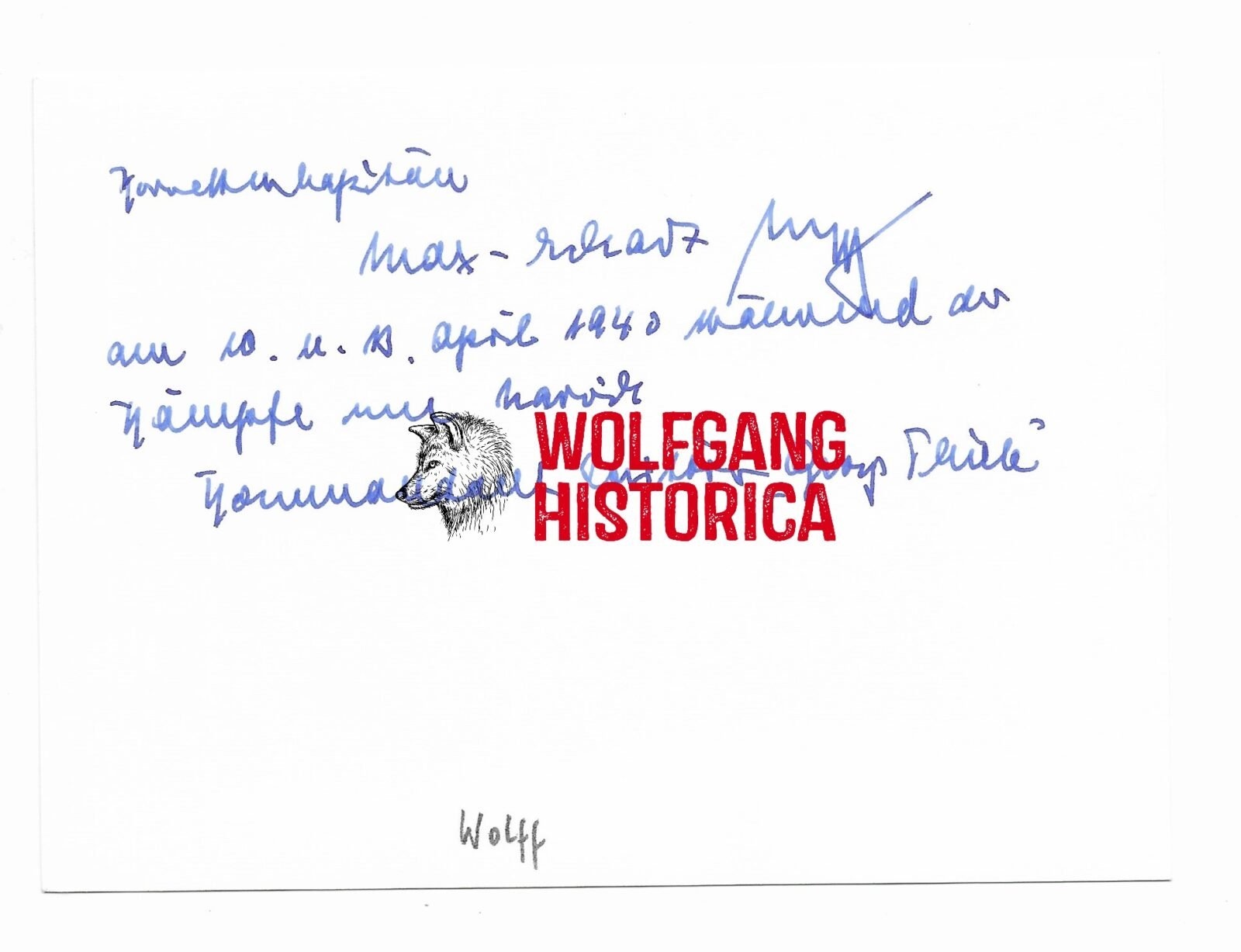 Original Postwar Signature on a Postwar Photo of Max-Eckart Wolff. Korvettenkäpitan Max-Eckart Wolff (19.12.1902 in Wernigerode † 09.11.1988 in Bremen) earned the Ritterkreuz des Eisernen Kreuzes on August 4, 1940 as Korvettenkapitän und Kommandant of Zerstörer Z-2 “Georg Thiele” during the German invasion of Norway!