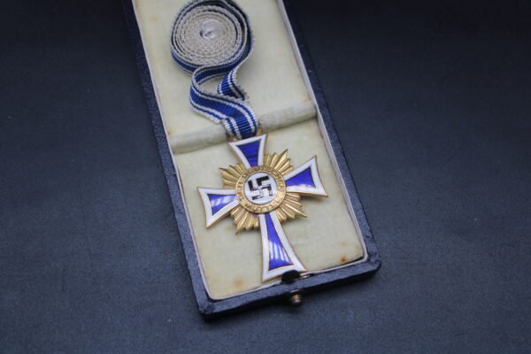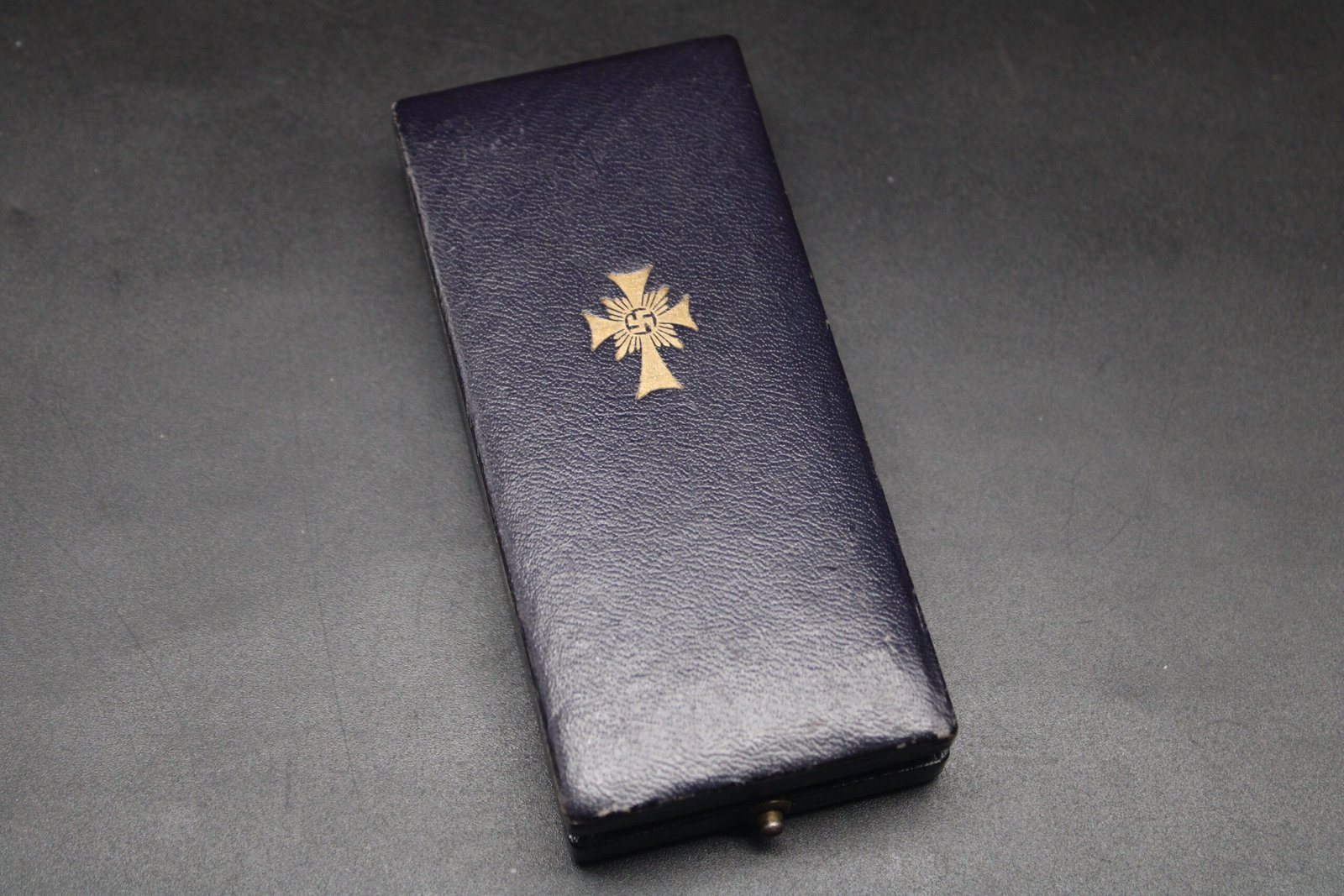 Original Mutterkreuz in Gold (Mother’s Cross in Gold) award in its Etui, maker marked with Friedrich Linden, Lüdenscheid. Condition as seen.