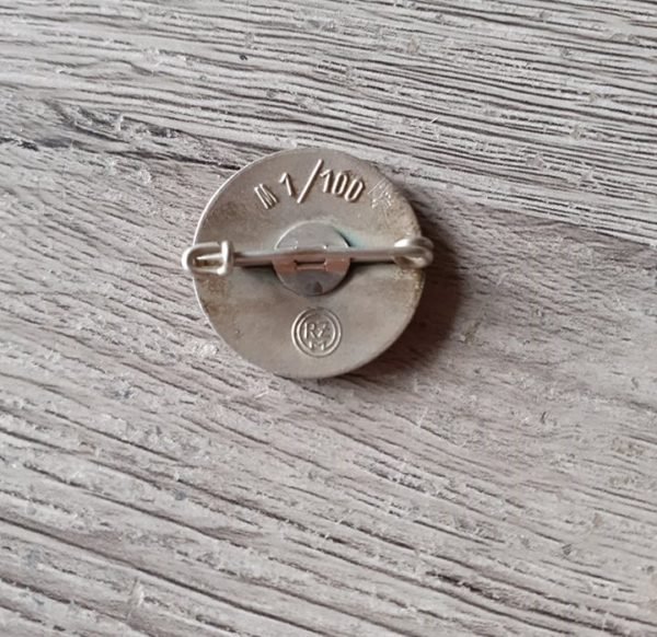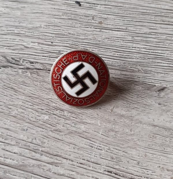 NSDAP Parteiabzeichen, made by Werner Redo, Saarlautern. “RZM” (Reichszeugmeisterei) insignia and maker marked “M1/100” on the reverse. Good to Very Good Condition.