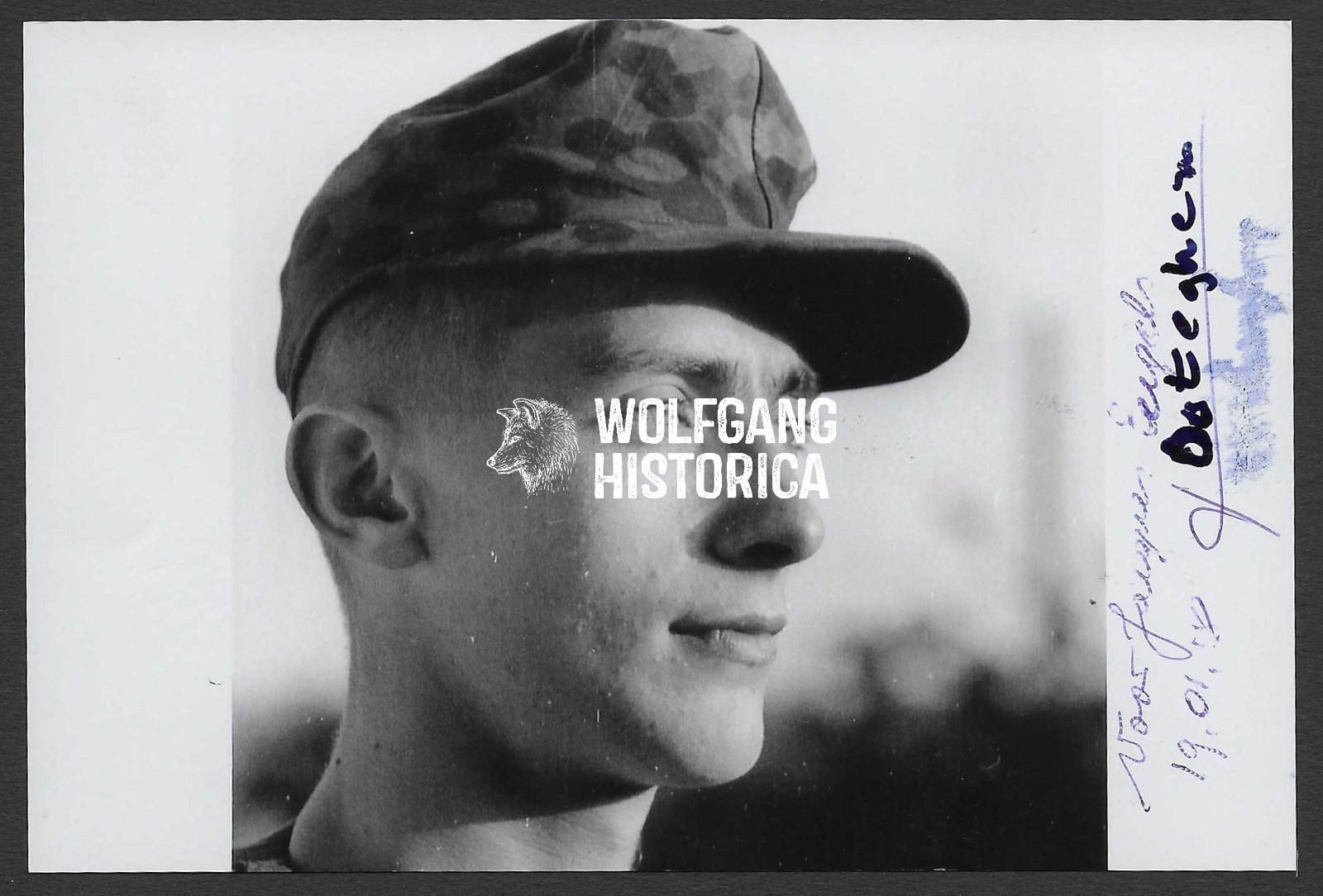 Original Postwar Signature on a Postwar Photo of Flemish Easternfront Volunteer Oswald van Ooteghem. SS-Untersturmführer Oswald van Ooteghem served in the SS-Freiwilligen-Legion “Flandern” and the SS-Jugend-Bataillon 27 of the 27. SS-Freiwilligen-Grenadier-Division “Langemarck”. Postcardsize.