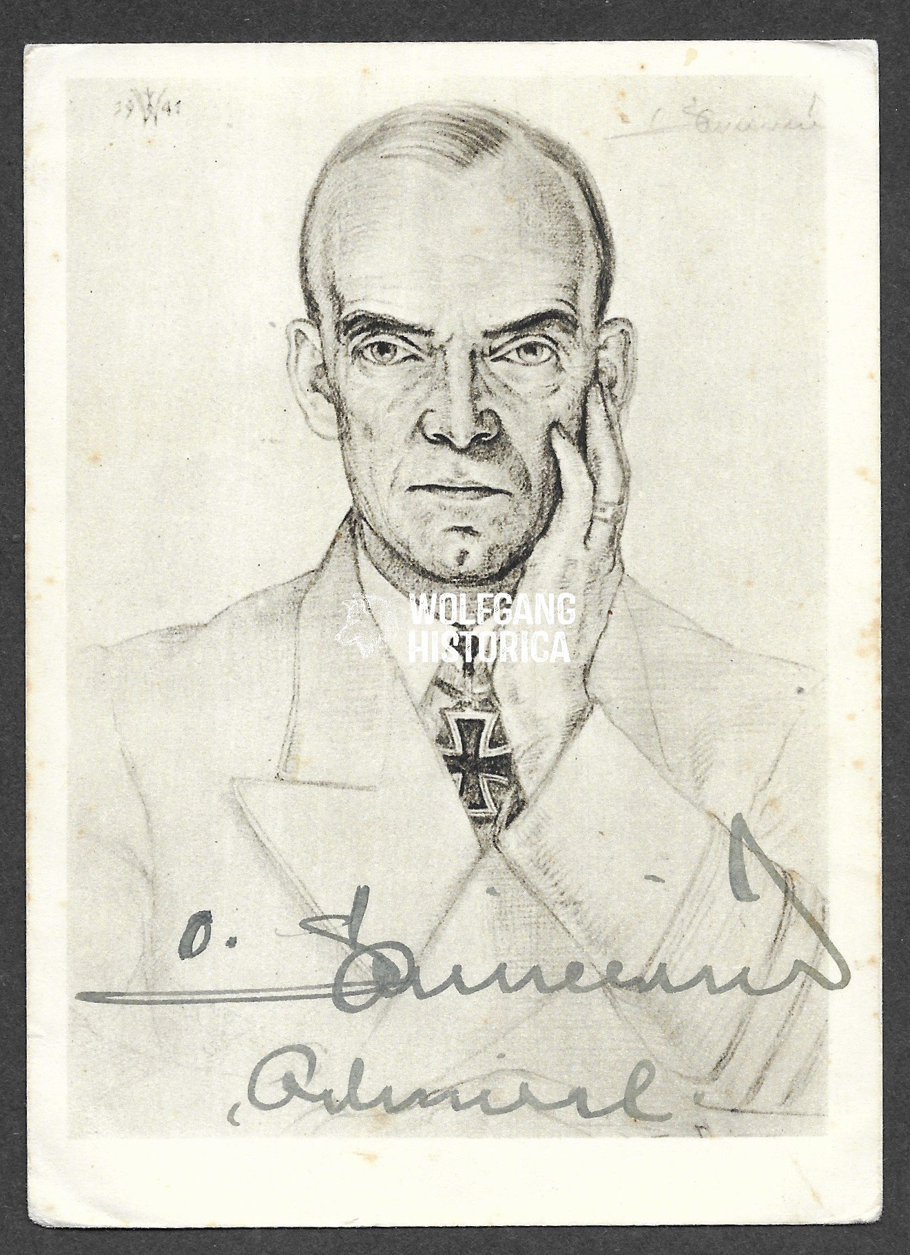 Original Postwar Signature of Generaladmiral Otto Schniewind (14 December 1887, Saarlouis † 26 March 1964, Linz) was a senior officer of the German Kriegsmarine during the Second World War. He rose through the ranks to serve as Vizeadmiral und Chef des Stabes der Seekriegsleitung (Chief of Staff of Naval Warfare Command), later commanding major naval formations.