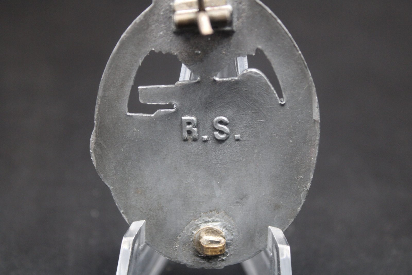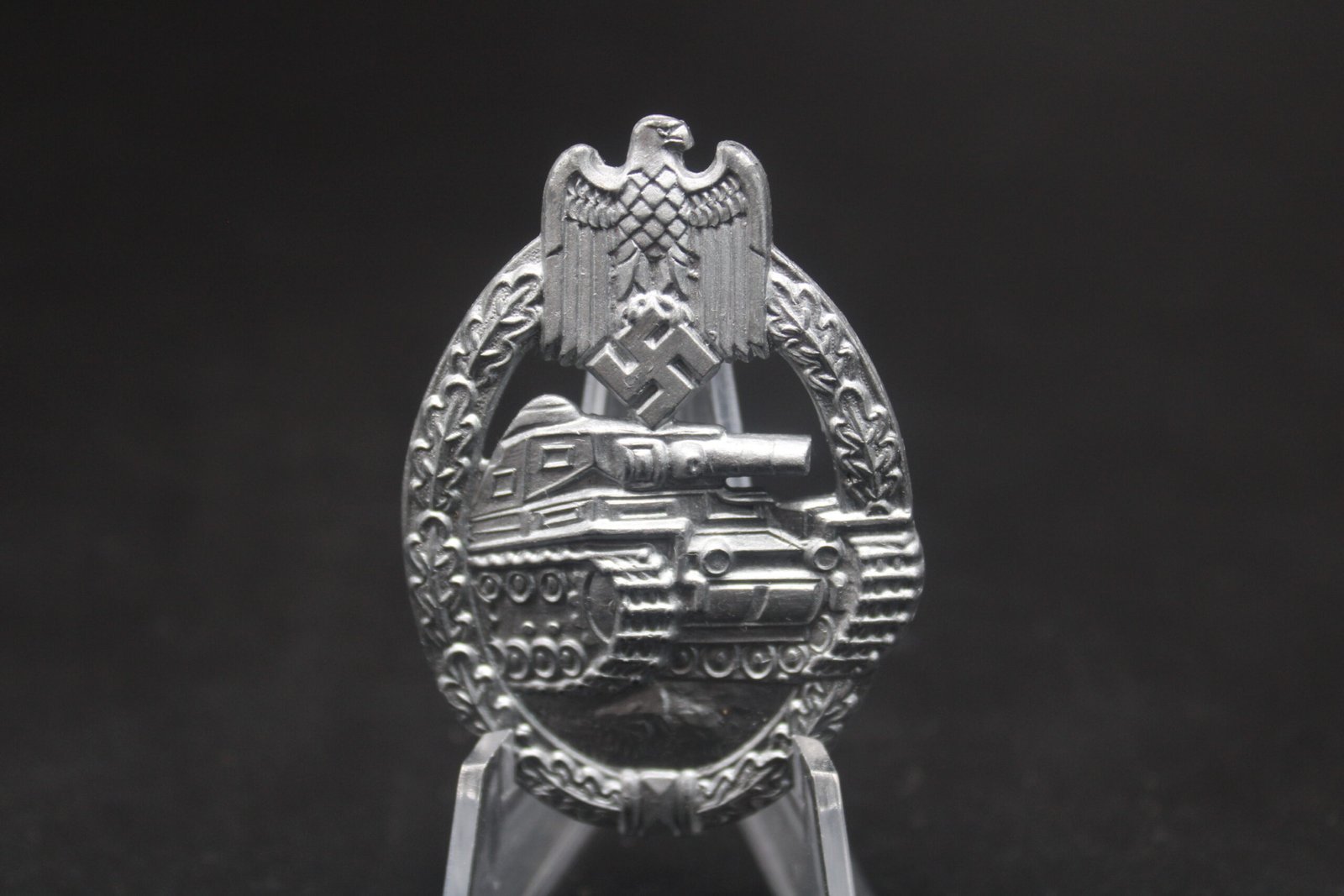 Original Panzerkampfabzeichen in Silber (Panzer Assault Badge in Silver). Maker marked “R.S.” for Rudolf Souval, Wien. Condition as seen.