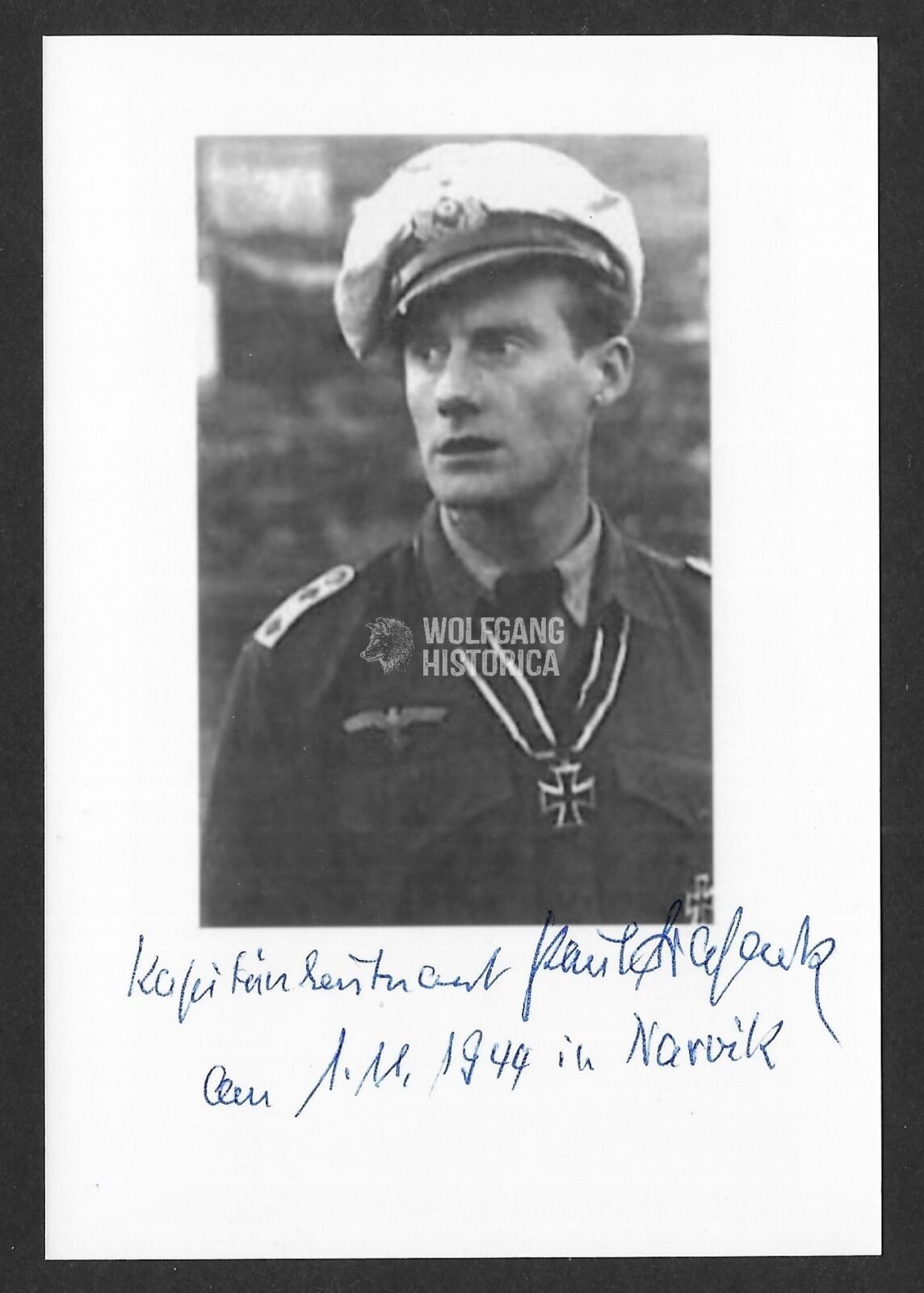 Original Postwar Signature on a Postwar Photo of Paul Brassack. Kapitänleutnant Paul Brassack (16.05.1916 † 11.03.2013) earned the Ritterkreuz des Eisernen Kreuzes on October 30, 1944 as Kapitänleutnant und Kommandant of Uboot “U-737”. Condition as seen. Postcardsize.