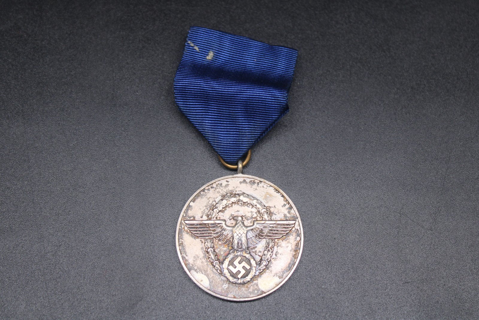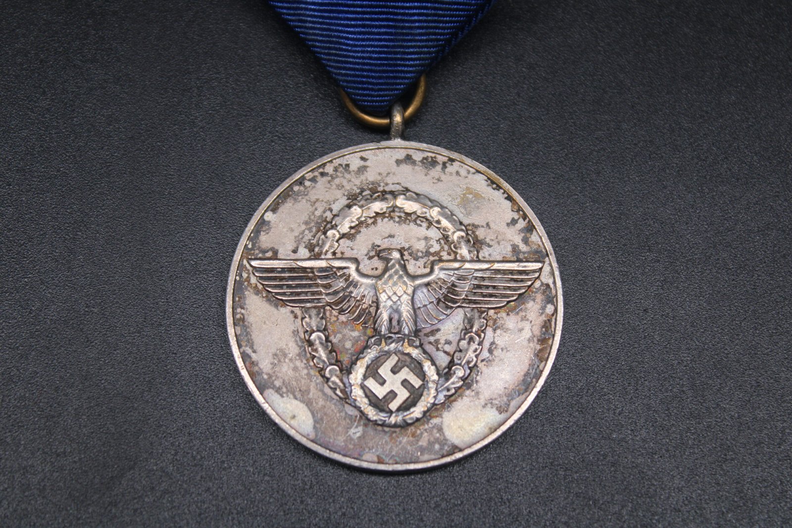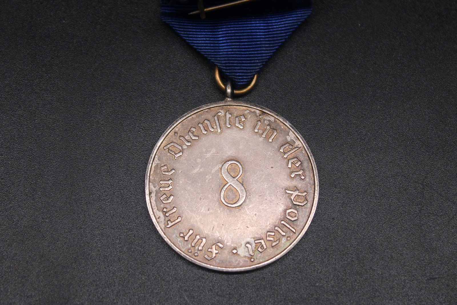 Original Polizei-Dienstauszeichnung 3. Stufe für 8 Jahre Treue Dienst (Police Service Award 3rd Class for 8 Years Loyal Service). Ribbon complete with pin! Condition as seen.
