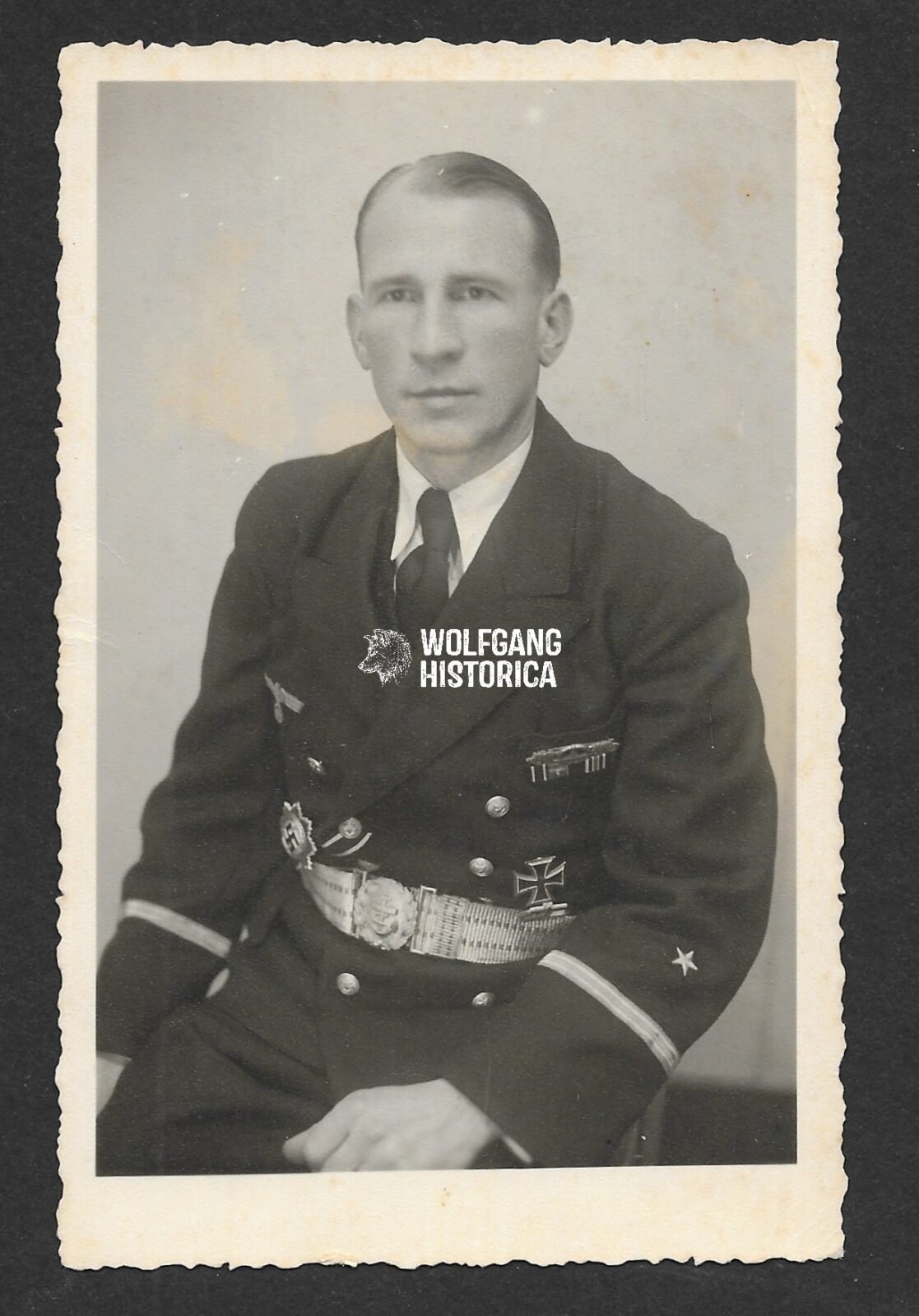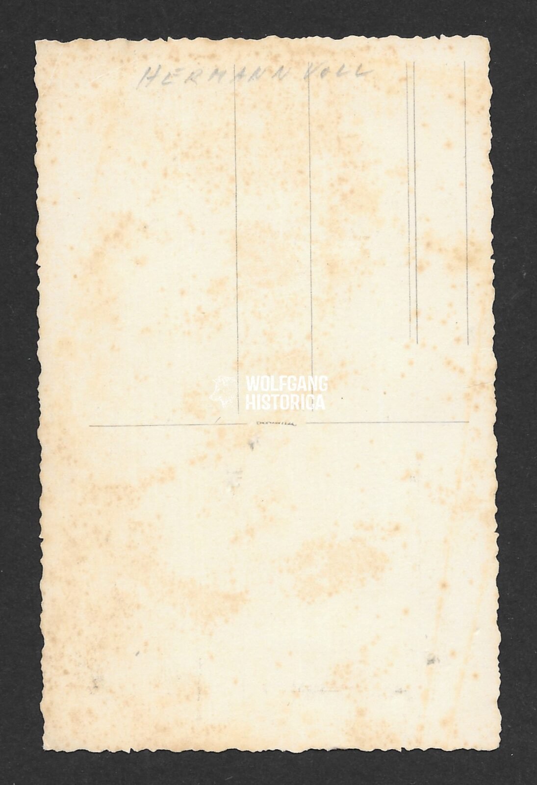 Original Wartime Portrait of Hermann Voll. Obersteuermann Hermann Voll (18.01.1917 † 08.12.2008) earned the Deutsches Kreuz in Gold on August 7, 1943 as Steuermann und Wachoffizier on U-Boot “U-518”. Postcardsize.