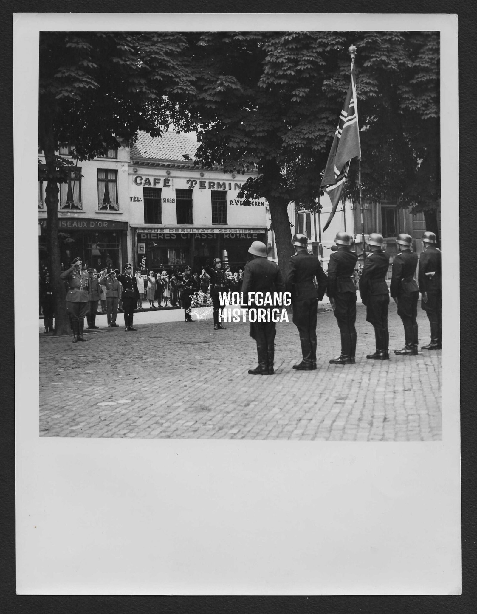 Press Photo Flemish Collaboration: Vlaamse Wachtbrigade in Brussels with officers & Flag!