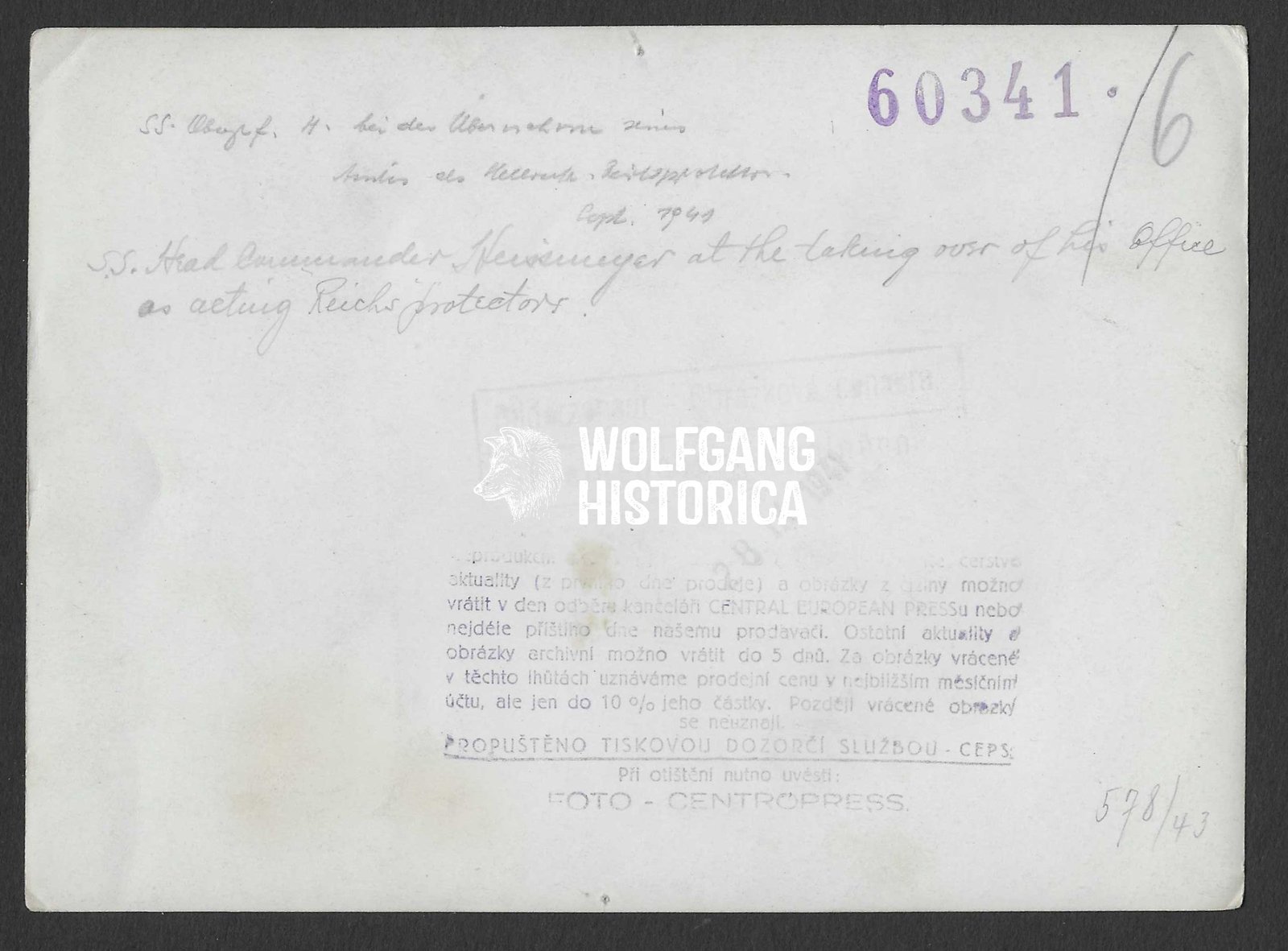 Press Photo: SS-Obergruppenführer Reinhard Heydrich in Prague