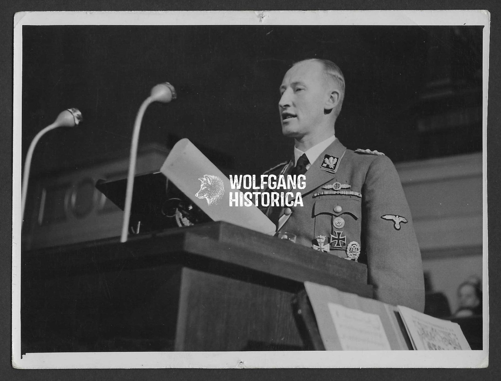 Press Photo: SS-Obergruppenführer Reinhard Heydrich speaking at a Conference