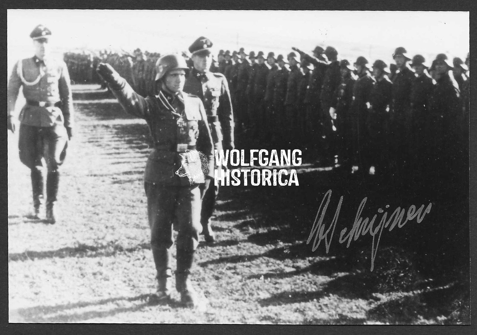 Original Postwar Signature on a Postwar Photo of Remi Schrijnen. SS-Unterscharführer Remi Schrijnen (24.12.1921 † 27.07.2006) earned the Ritterkreuz on September 21, 1944 as SS-Sturmmann und Richtschütze in the 6. Kompanie/ 6. SS-Freiwilligen-Sturmbrigade “Langemarck”. Condition as seen. Smaller than postcardsize.