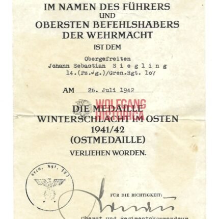 Winterschlacht im Osten Award Doc: Grenadier-Regiment 107 (34.Inf.Div.)