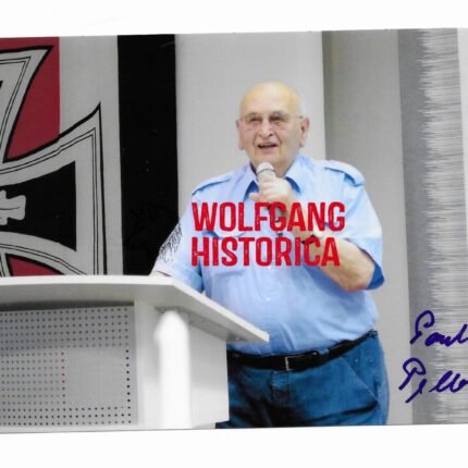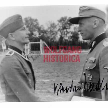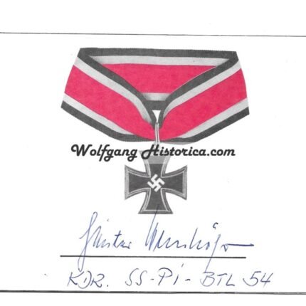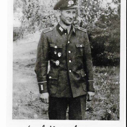 Original Postwar Signature on a Postwar Photo of Richard Rudolf. SS-Oberscharführer Richard Rudolf (16.04.1923 † 13.12.2004) earned the Ritterkreuz on November 8, 1944 as SS-Oberscharführer und Zugführer in the 9. Kompanie/ SS-Panzer-Regiment 12 of the 12. SS-Panzer-Division “Hitlerjugend”. He was awarded the Knight’s Cross for his bravery in the Battle of Normandy fighting at the Carpiquet airfield just outside of Caen.