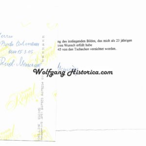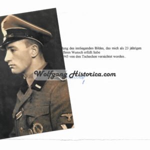 Original Postwar Signature on a Postwar Photocopy of Rudolf Messering. SS-Untersturmführer Rudolf Messering (00.00.1919 † ) served with the 3. SS-Panzer-Division “Totenkopf” and the 18. SS-Freiwilligen-Grenadier-Division “Horst Wessel”. Good condition. Measuring 8,3×13,1cm. Signed on the reverse. Comes with an extra signed letter.