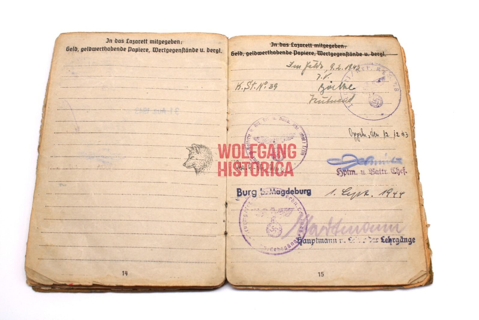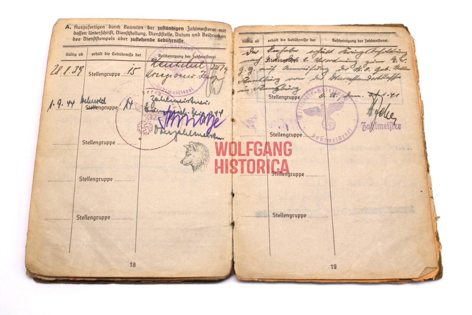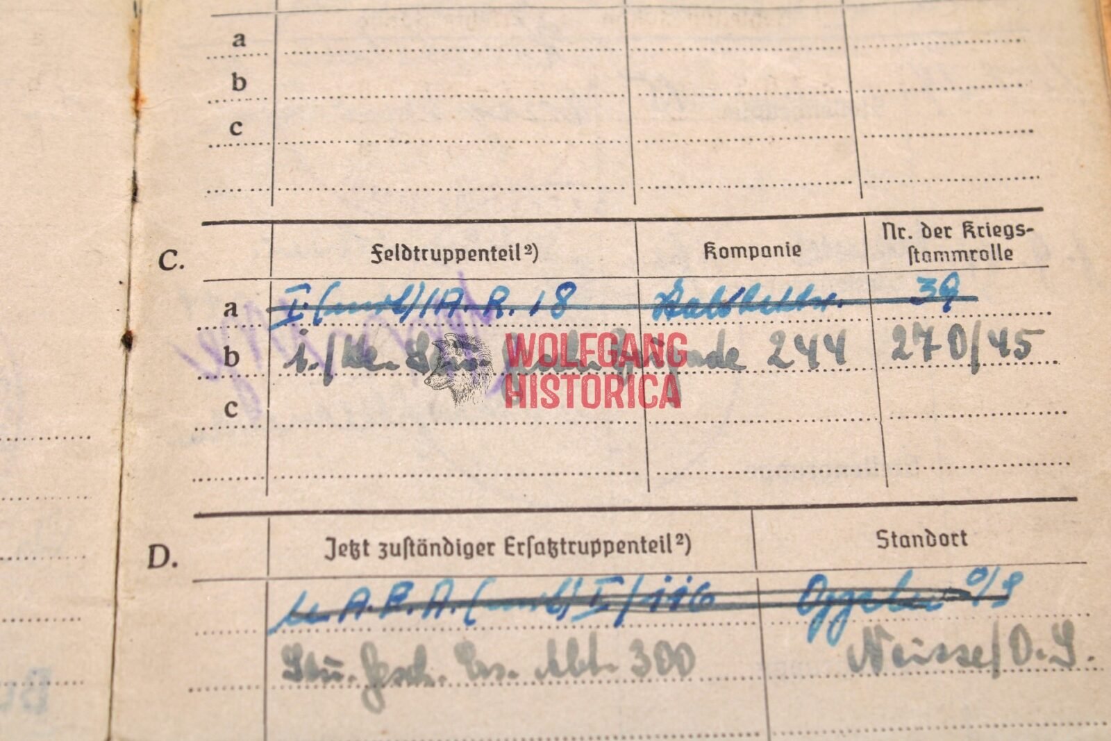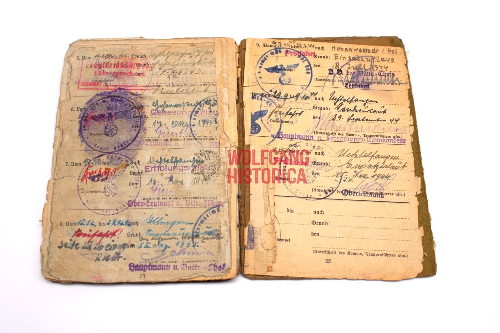 Original Soldbuch & 2 Award documents of Unteroffizier Ernst Oehlmann, born on January 13, 1915 in Linz a.d. Donau and was a Beamter. He divorced on 25.2.43 (?). The Soldbuch was opened on September 12, 1939 by Nachrichten-Batterie/ Artillerie-Ersatz-Abteilung 158. He wore the Erkennungsmarke: -67- le.A.e.U.A.A.(m) I.116.