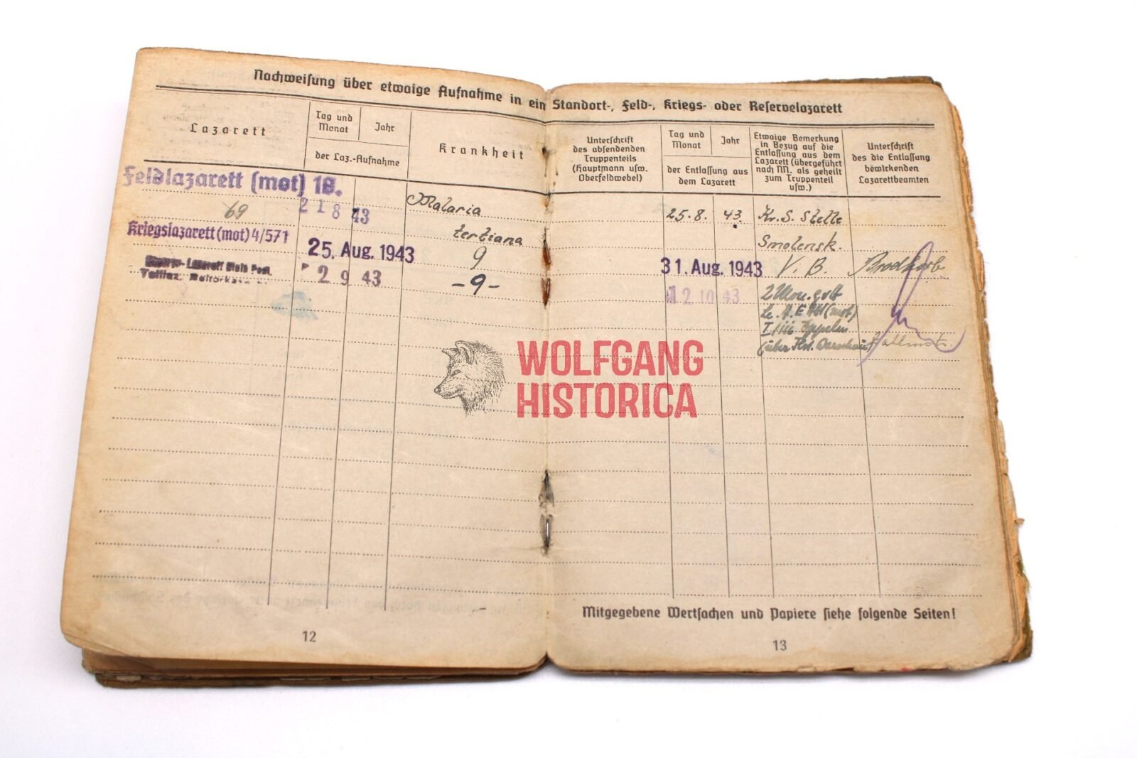- Sufferedfrom Malaria in August until October ‘43