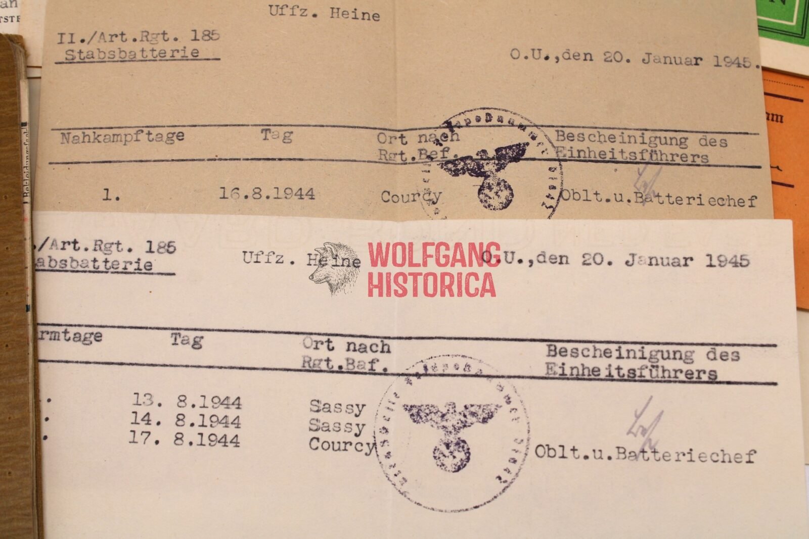 Set Art.Rgt.185 Normandy! (85.Inf.Div.) (EKM, Soldbuch & Award Docs)