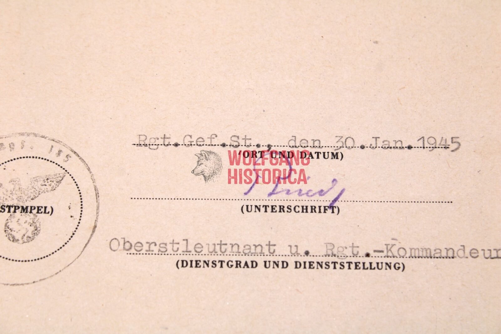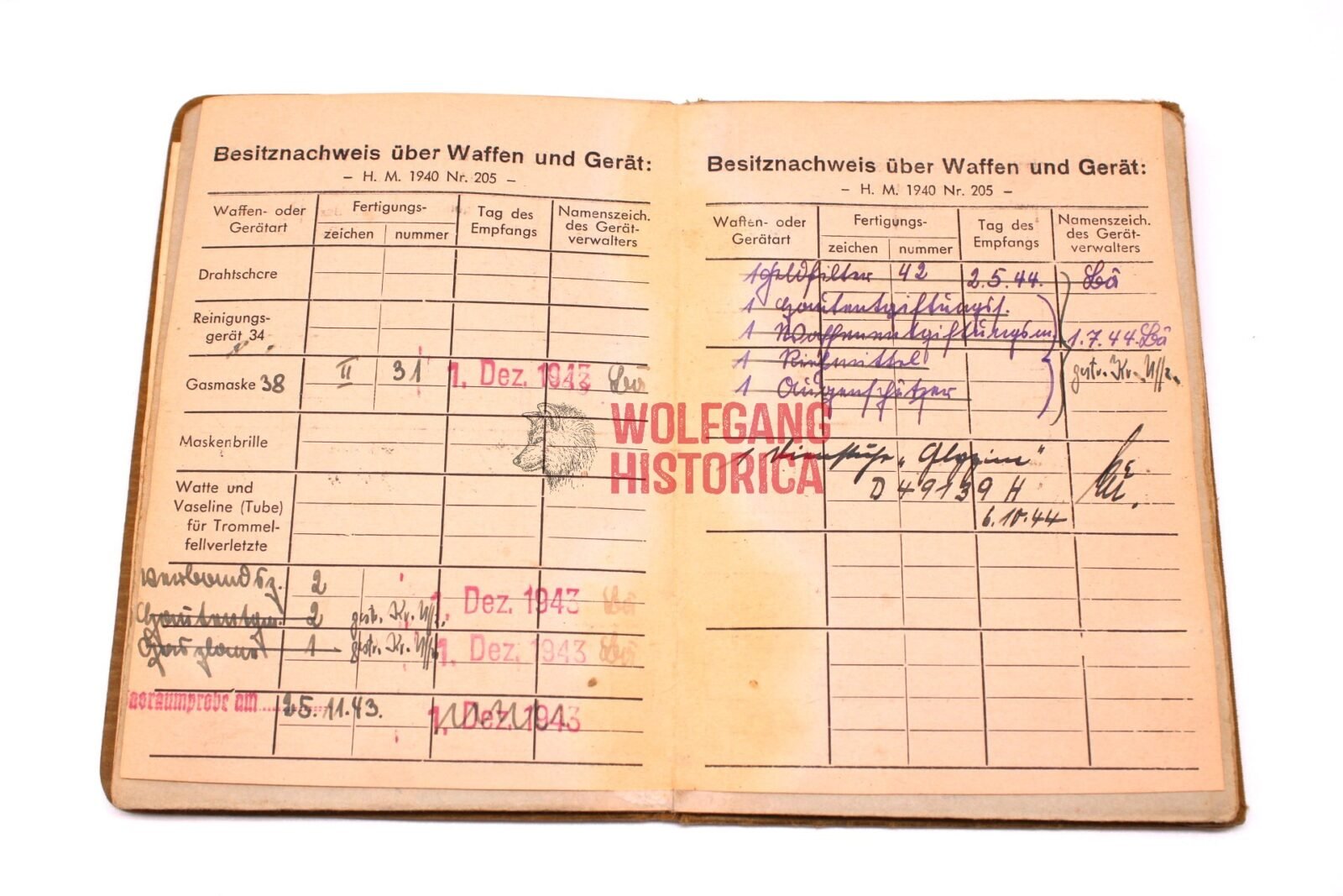 He was equipped with the Walther P38 on March 29, 1944 and received a Dienstuhr (D49139H) on October 6, 1944.