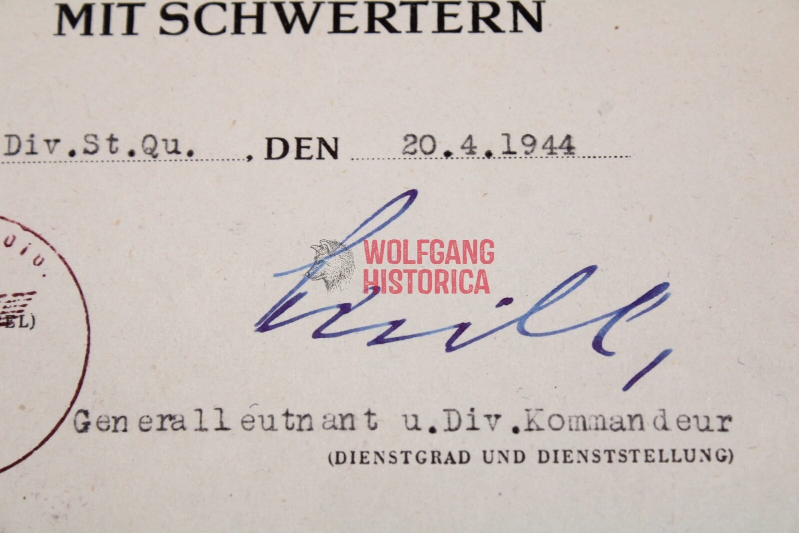 - on 20.04.1944 the Kriegsverdienstkreuz 2. Klasse mit Schwertern