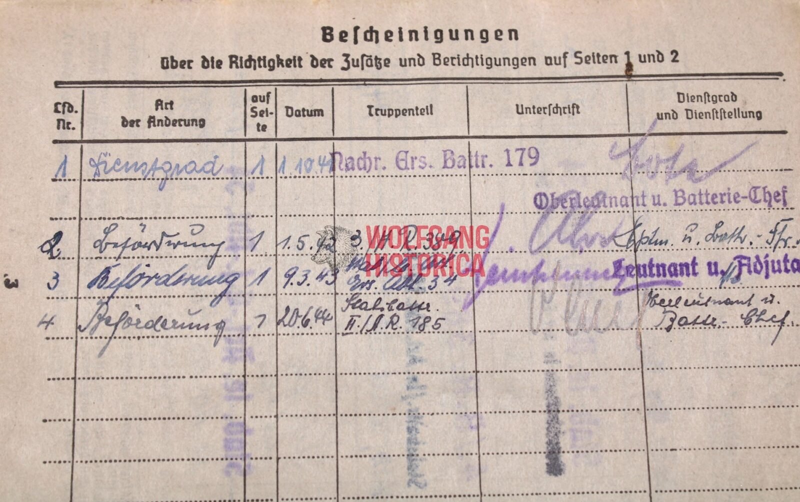 - Timeframe 11.1944 in Stab der I./ Artillerie-Regiment 185 (**)
