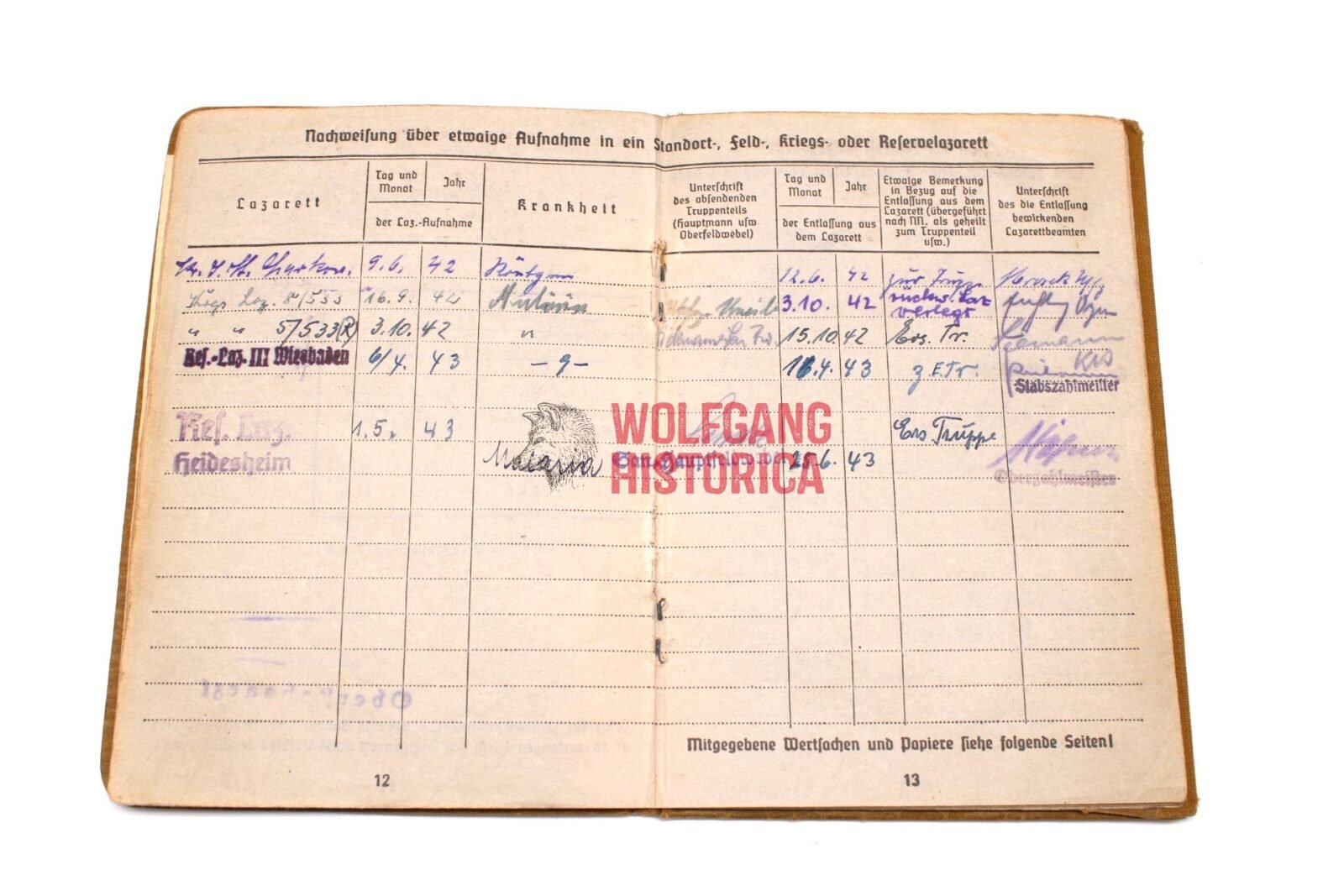 - Fell sick again in April 1943 with Malaria and send back to the Ersatztruppen after 10 days in Reserve-Lazarett III Wiesbaden.