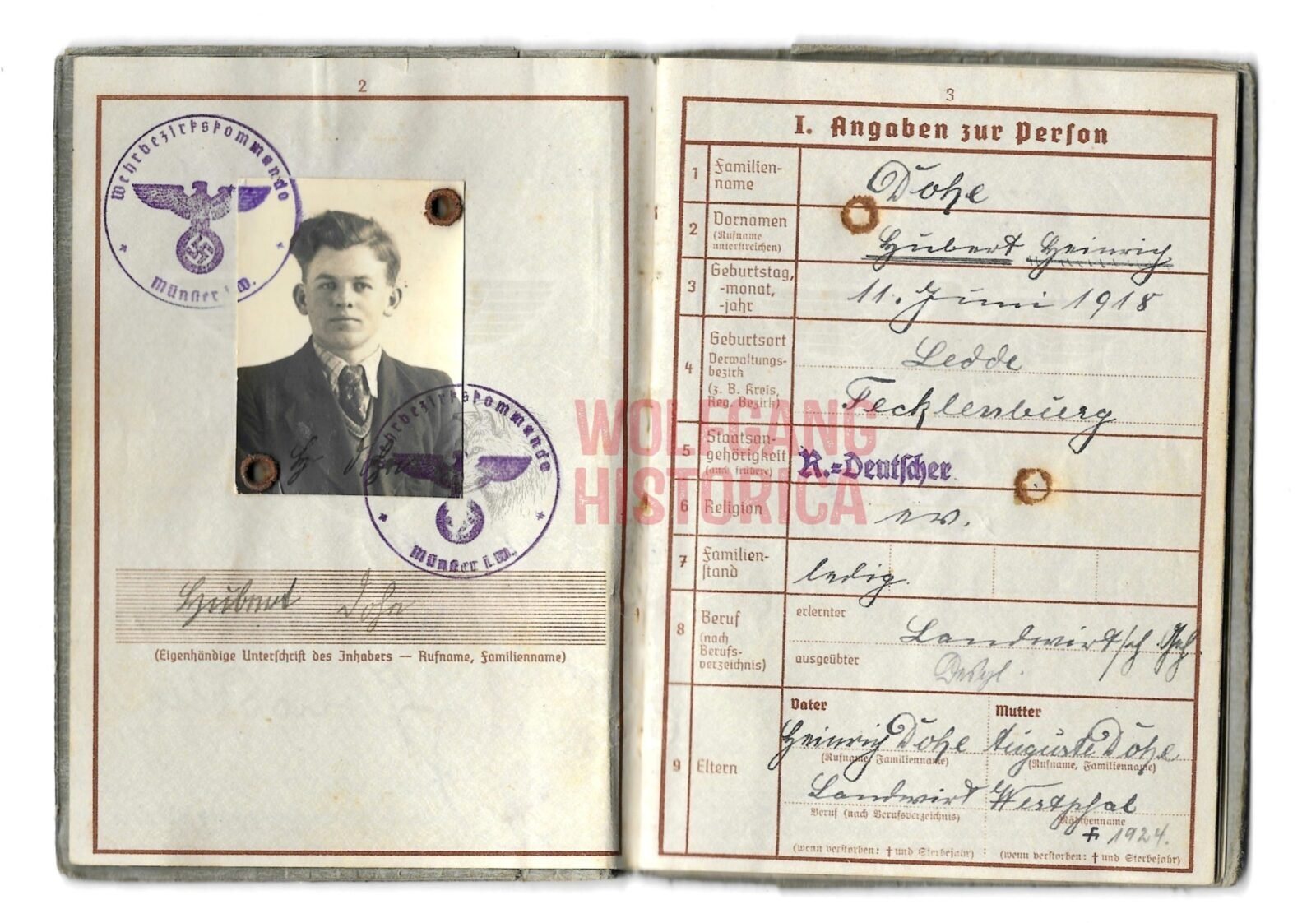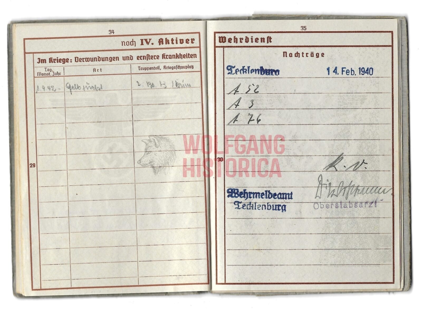 - Wehrpass, well filled-in however notably two awards were never entered in his WP (the Krimschild & Kreuzzug) but it also shows that he earned the Winterschlacht im Osten.