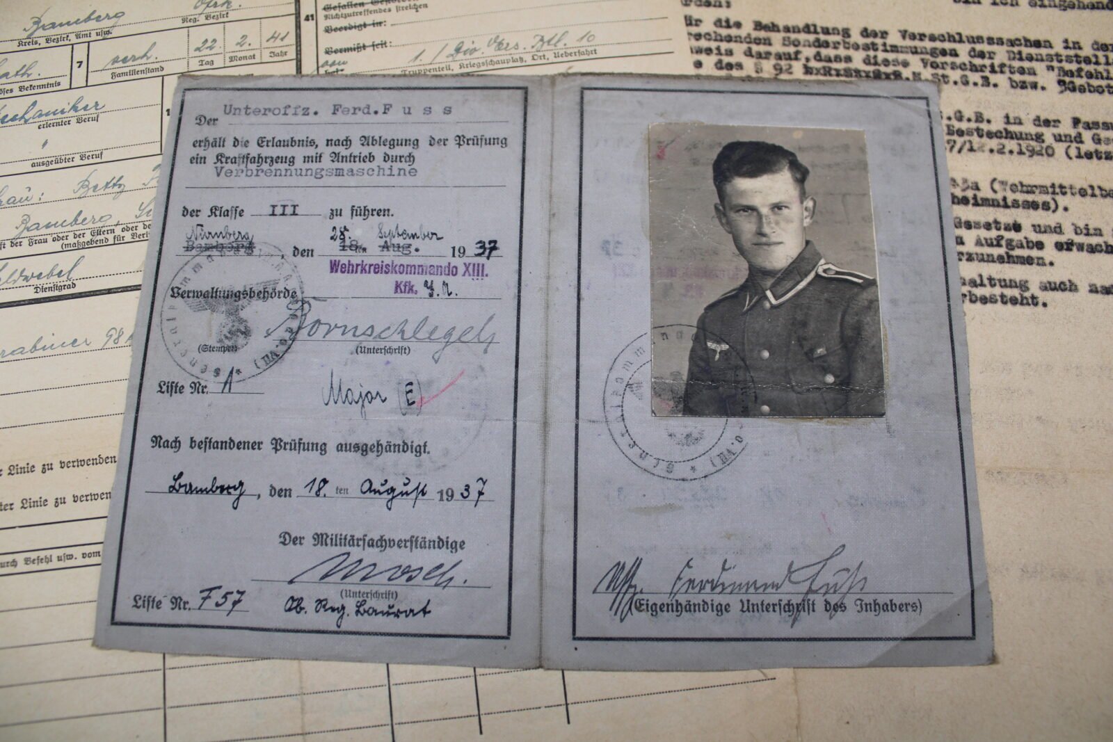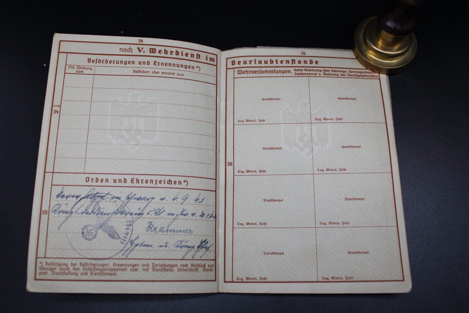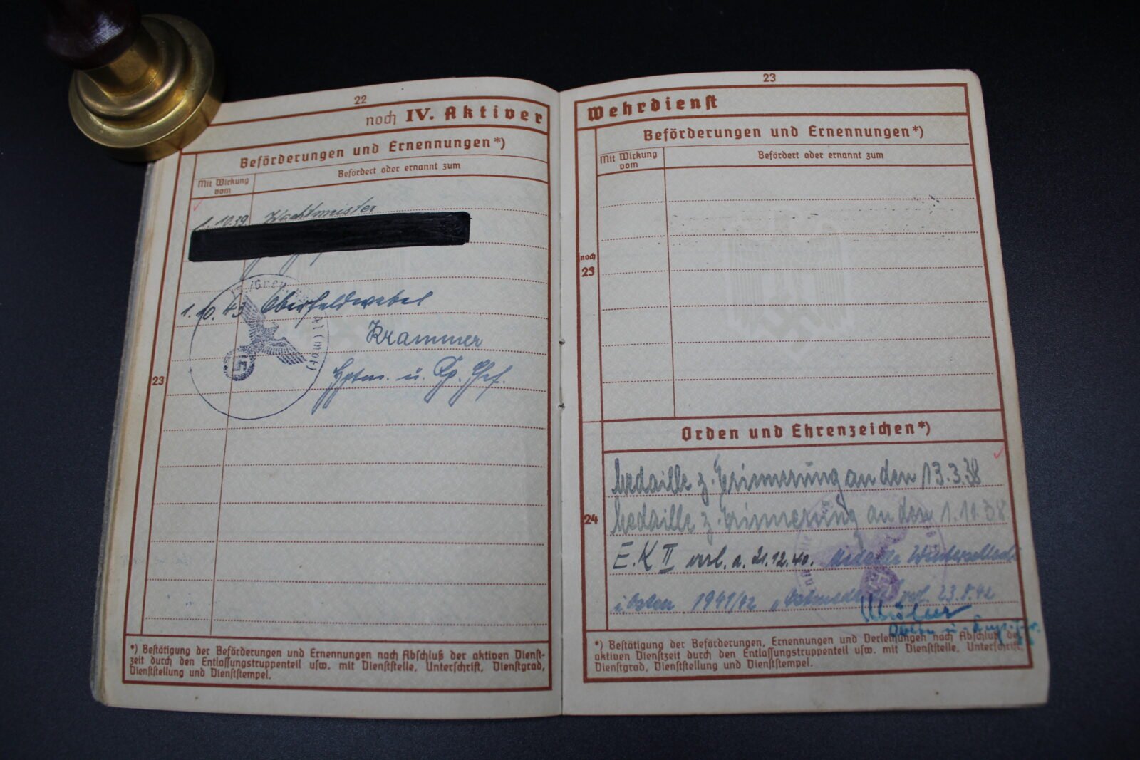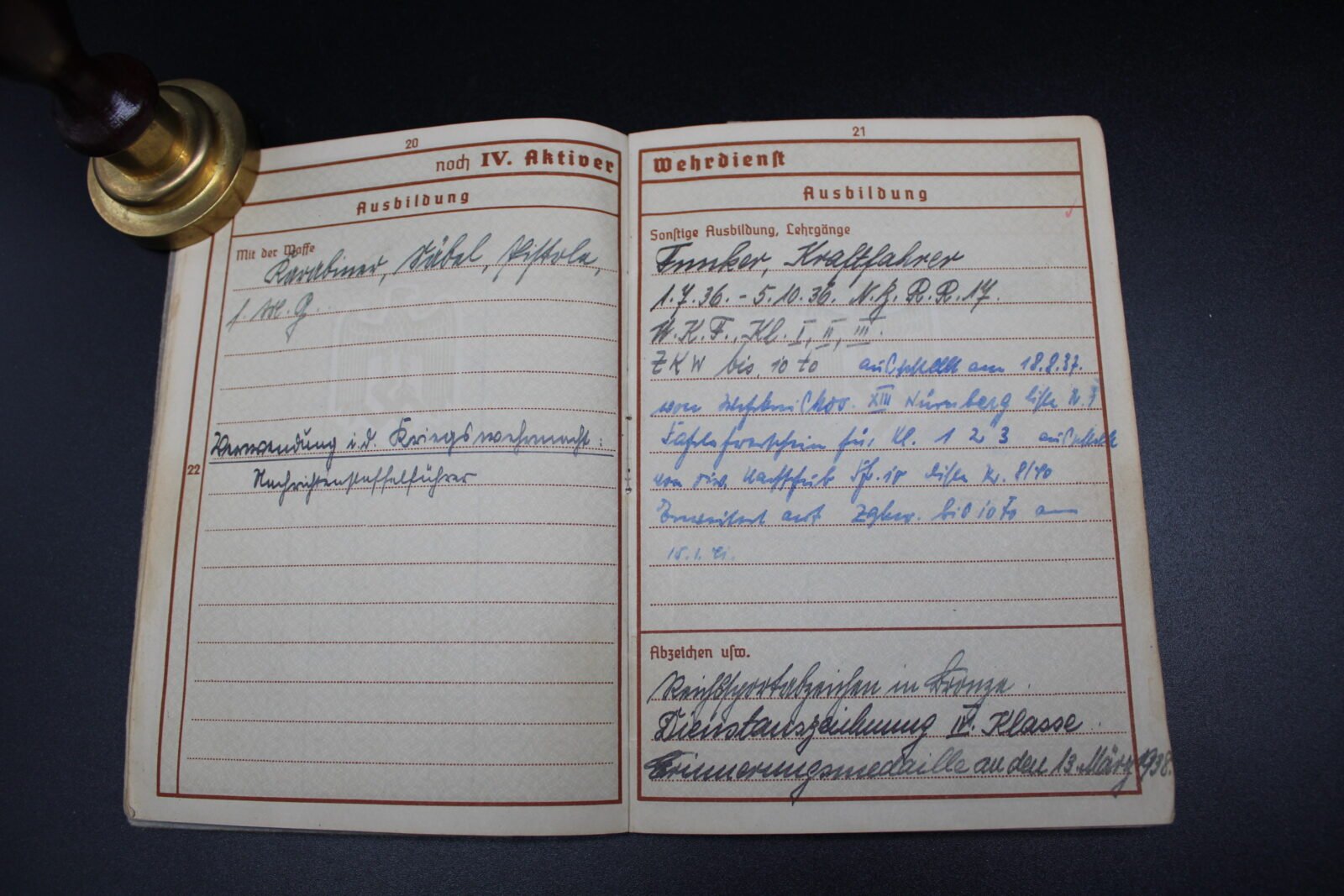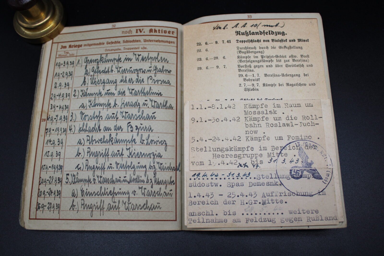Original Wehrpass, Wehrmacht-Führerschein, Wehrmacht-Fahrlehrerschein and some documents from Oberfeldwebel Fuß. He served in various interesting units such as Reiter-Regiment 17, Kavallerie-Regiment 17, Aufklärungs-Abteilung 10 before ending up with Grenadier-Regiment 41. During his service, he earned various award: Reichssportabzeichen in Bronze, Dienstauszeichnung IV. Klasse, Erinnerungsmedaille an den 13. März 1938, Medaille zur Erinnerung an den 1. Oktober 1938, Eisernes Kreuz 2. Klasse, Winterschlacht im Osten 1941/42, Verwundetenabzeichen in Schwarz and the Kriegsverdienstkreuz 2. Klasse.