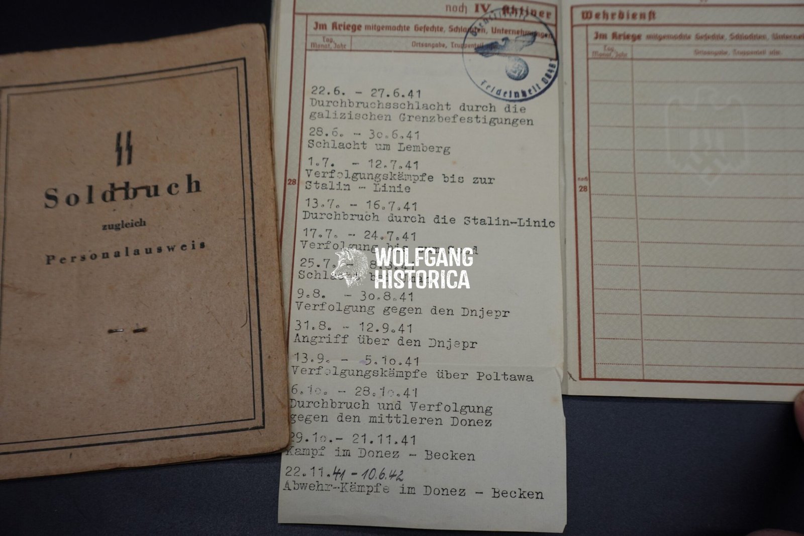 Set of SS-Soldbuch, Wehrpass & Militärpaß – Feldgendarmerie & Einsatzkommando Schutzpol. (10x Awards!)