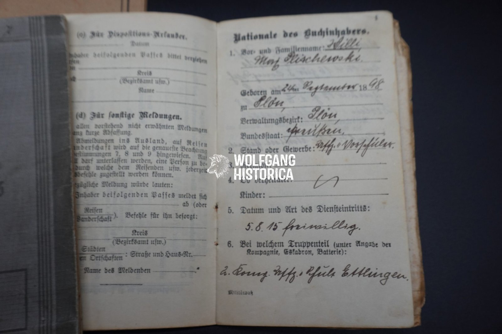 During World War 2, he served with the Feldgendarmerie-Trupp 111 and Feldgendarmerie-Abteilung 693. Eventually joining the Einsatzkommando der Schutzpolizei (?) in December 1943.