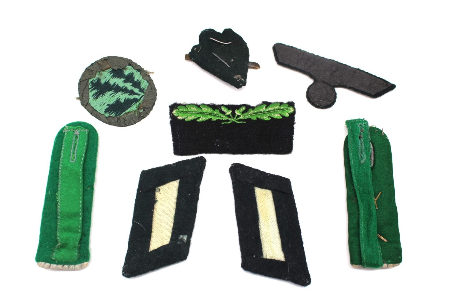 Original Stunning & Very Rare Insignia Estate of an officer of the 1. Skijäger-Division. Two-piece Skijäger badge, shoulderboards, collar tabs, cloth badges, camo rank … Name known, will be given to the buyer.