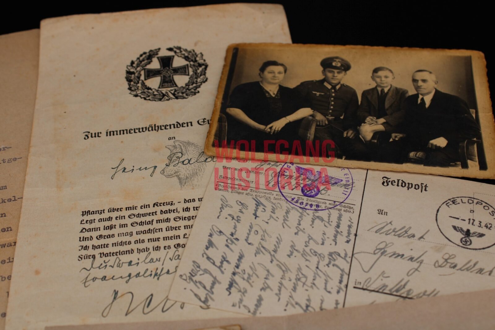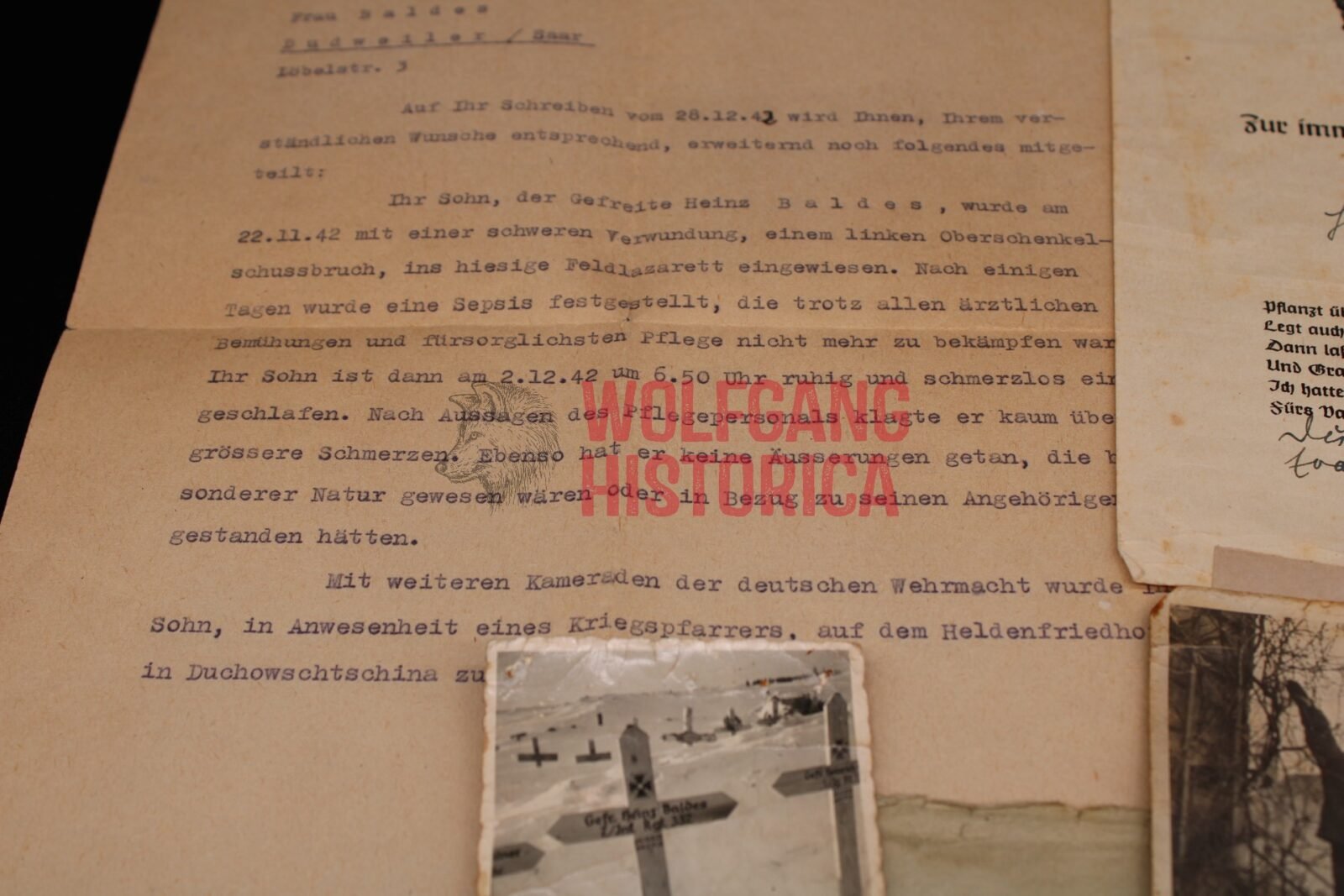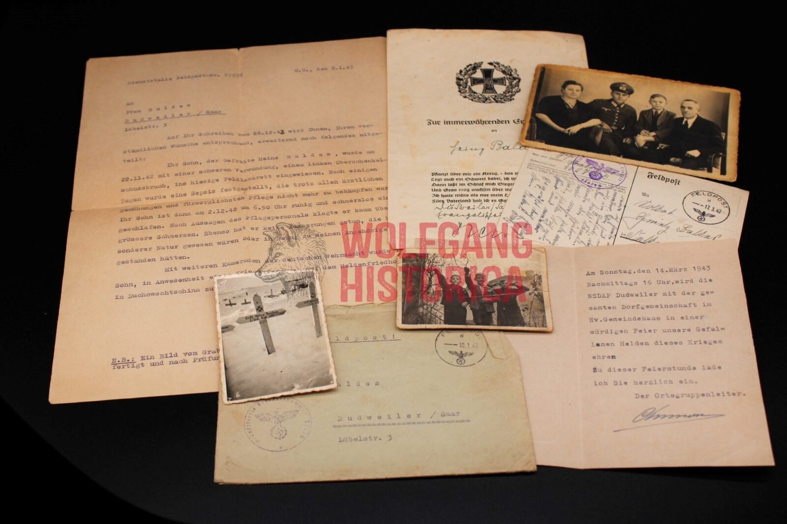 Small set of Gefreiter Heinz Baldes, who served with the 7. Kompanie/ Infanterie-Regiment 332 of the 197. Infanterie-Division, and died of his injuries on December 2, 1942 in Soviet-Russia.