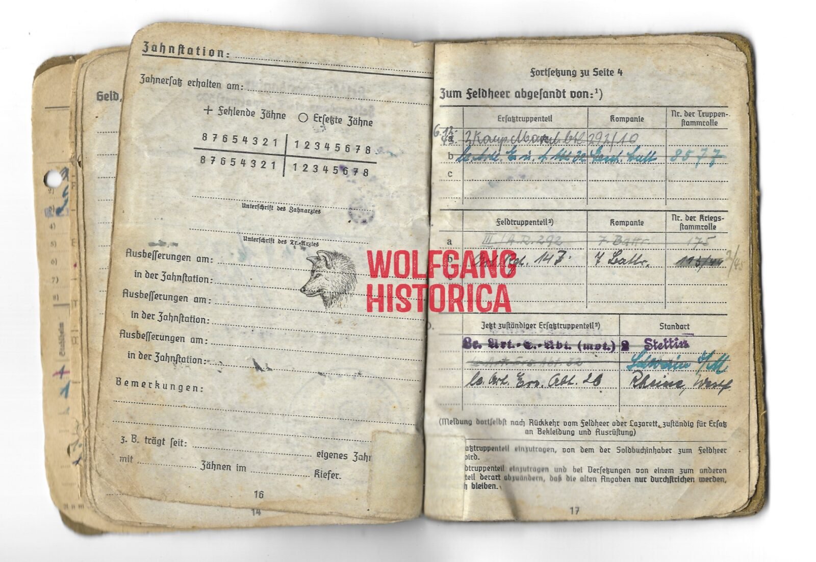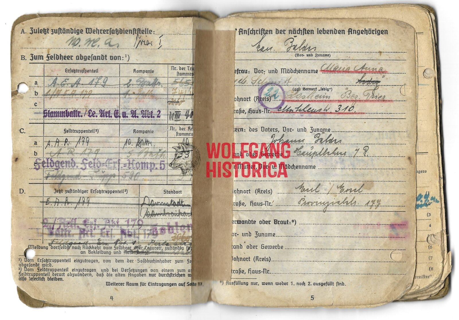 Soldbuch: Artillerie-Rgt. 179, Feldgendarmerie-Trupp 590 & Artillerie-Rgt. 292 & 147 (47. VGD) (1x Award)