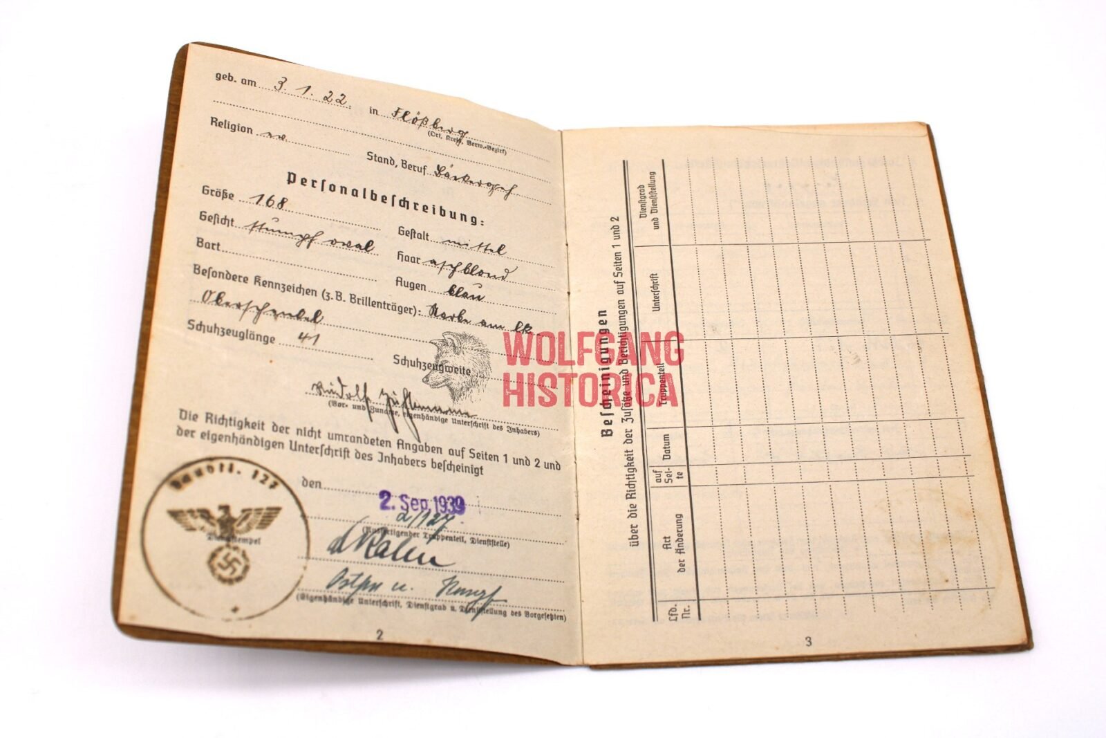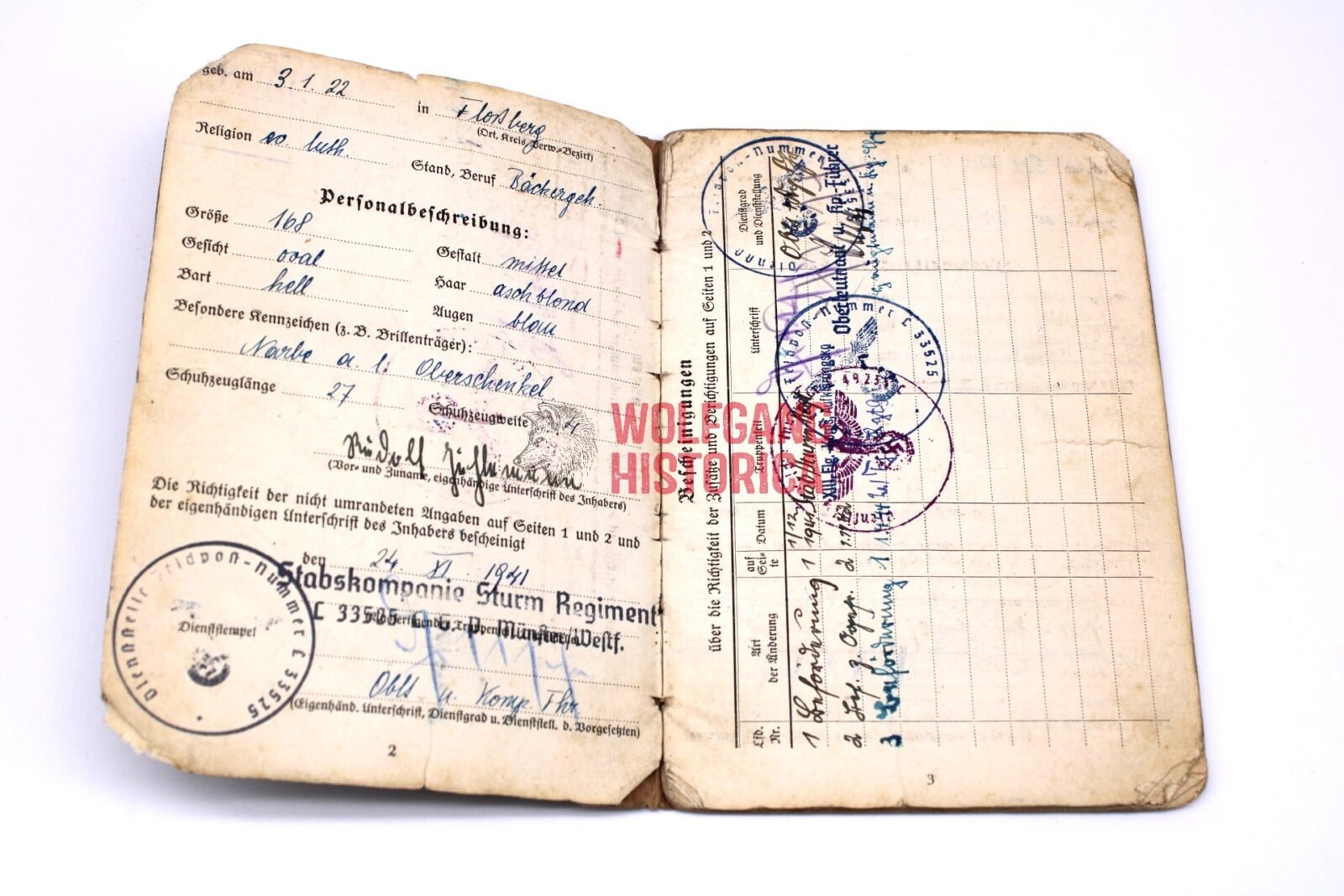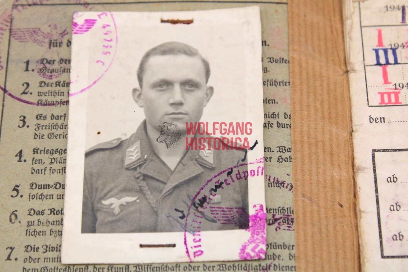 Soldbuch complete with photo. Nothing was denazified or censored. Condition as seen.