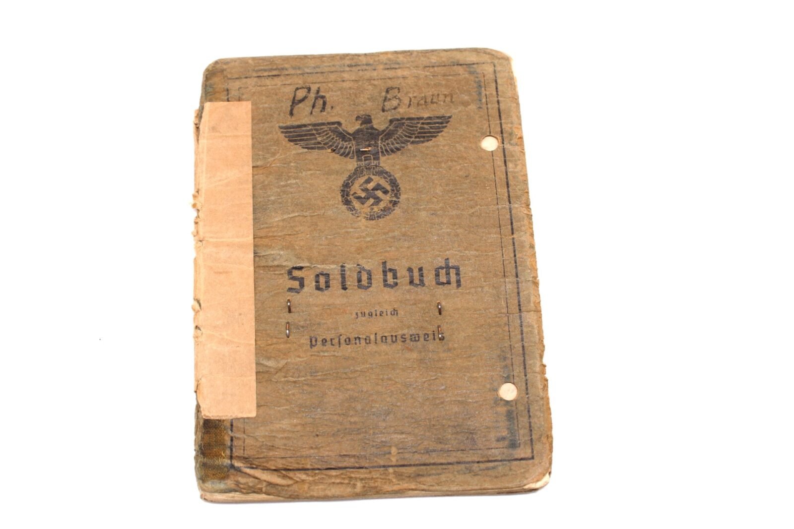 Original Soldbuch of Obergefreiter Philipp Braun, born on September 21, 1919 in Penzberg, Weilheim and was an Arbeiter as profession. The Soldbuch was opened on April 5, 1940 by the 3. Kompanie/ Infanterie-Ersatz-Bataillon 468. He wore the Erkennungsmarke: -6939- 1.Geb.Jäg.Ers.Btl.98.Â