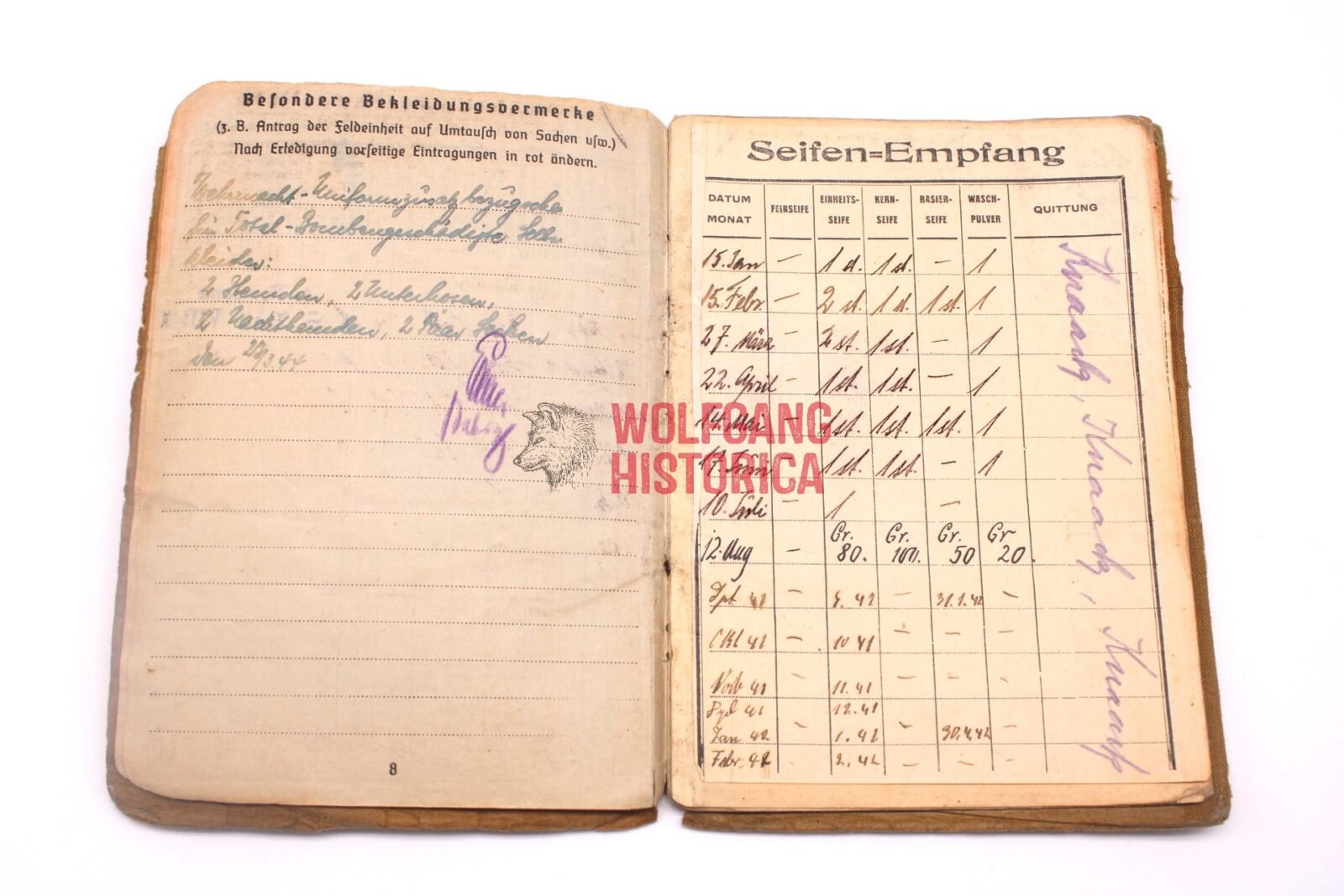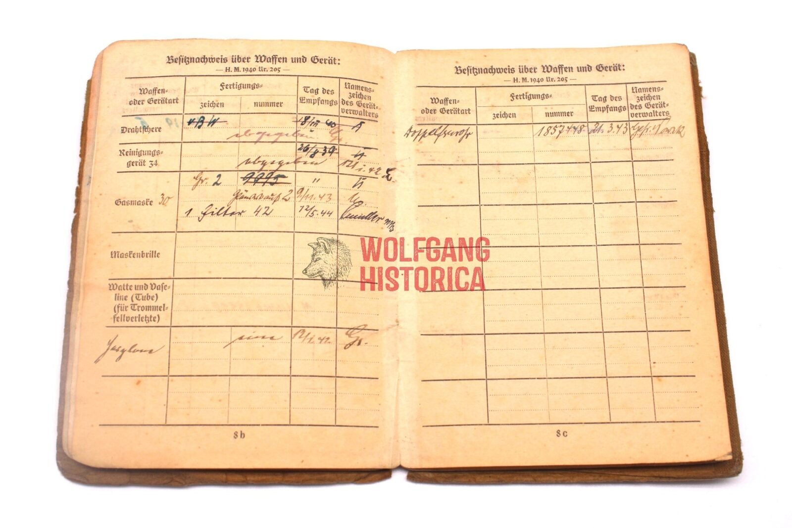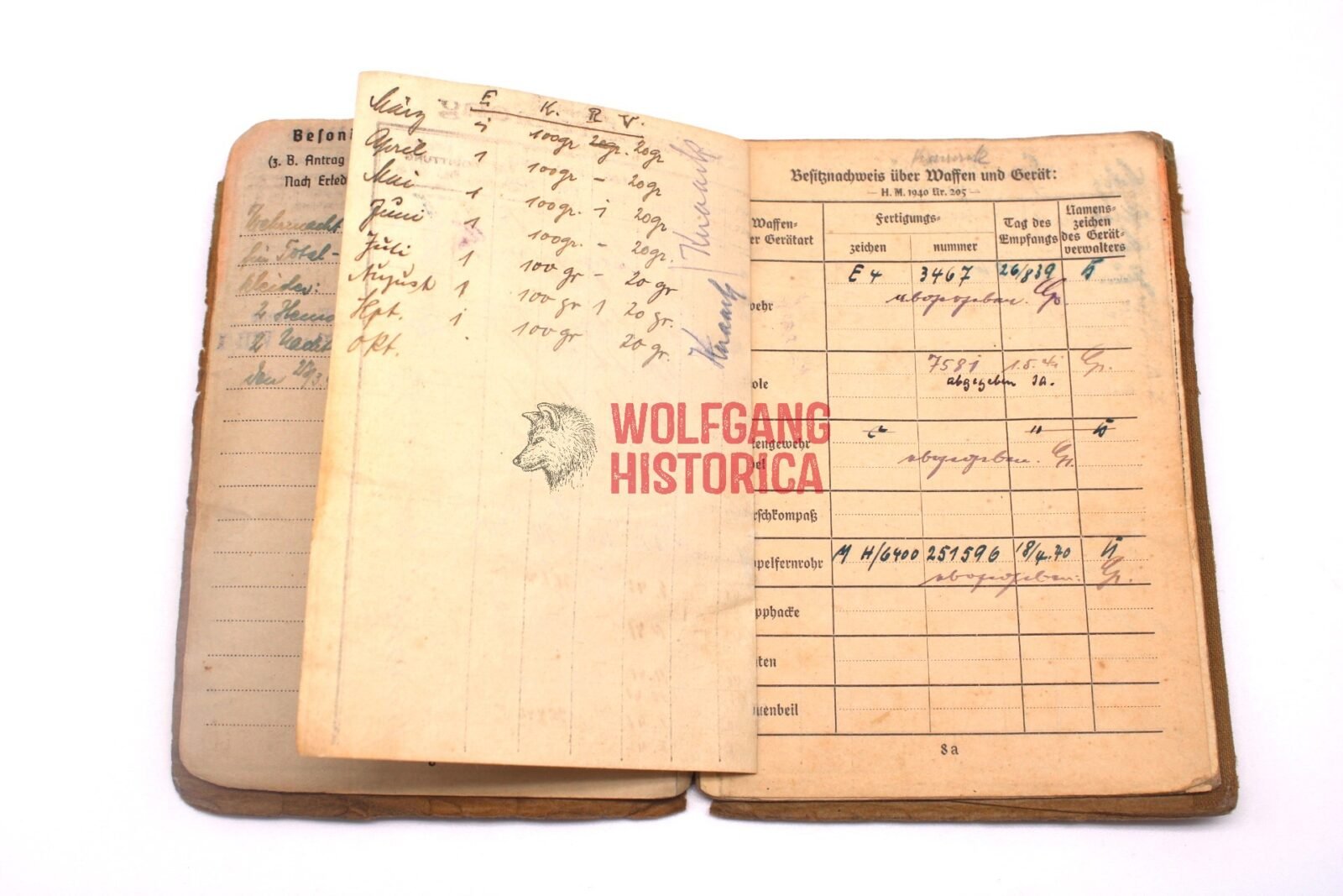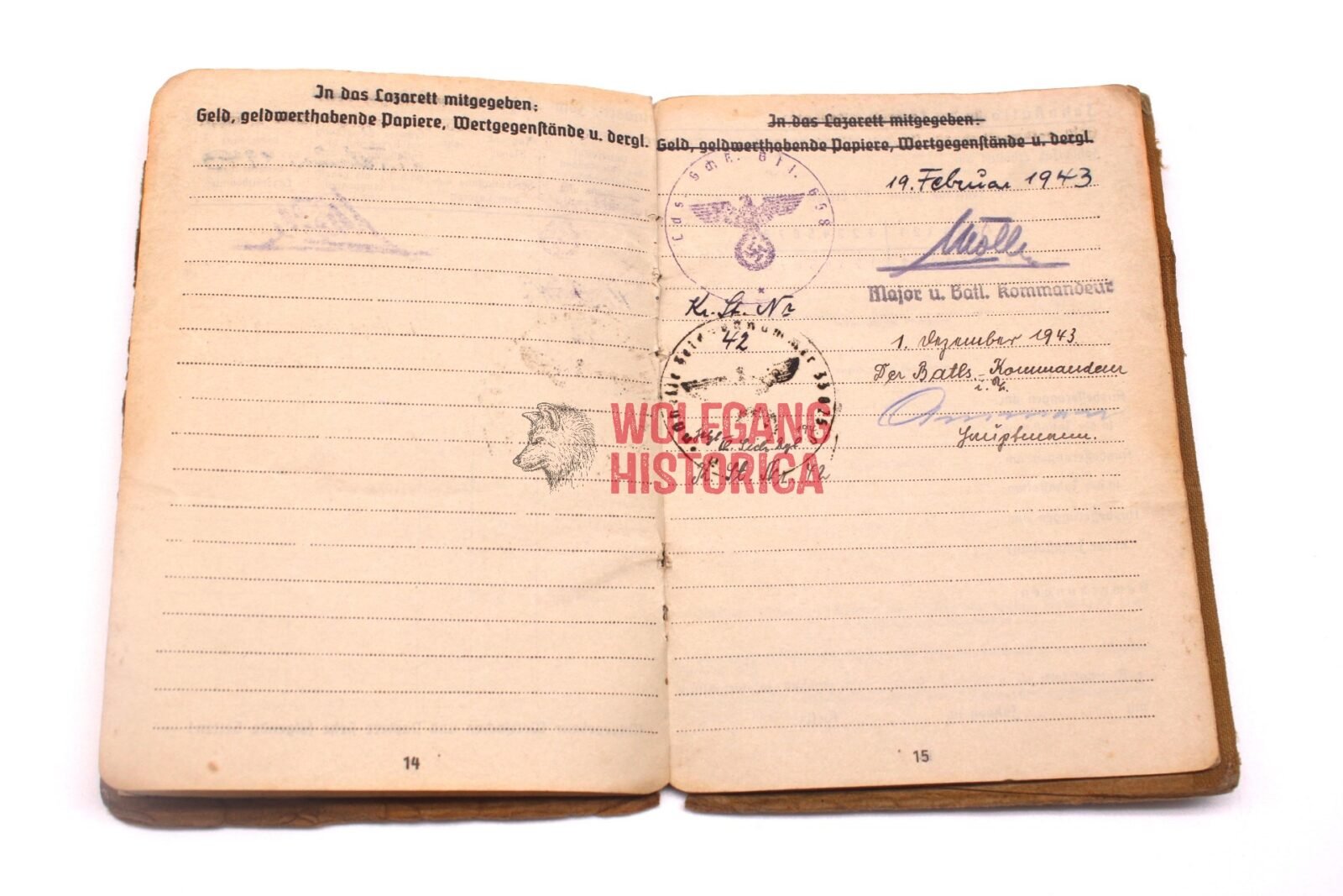 Original Soldbuch of Oberleutnant Wilhelm Knaack, born on November 28, 1897 in Hamburg. The Soldbuch was opened on August 26, 1939. He wore the Erkennungsmarke: -114- 4./W.S. 13. VIII.