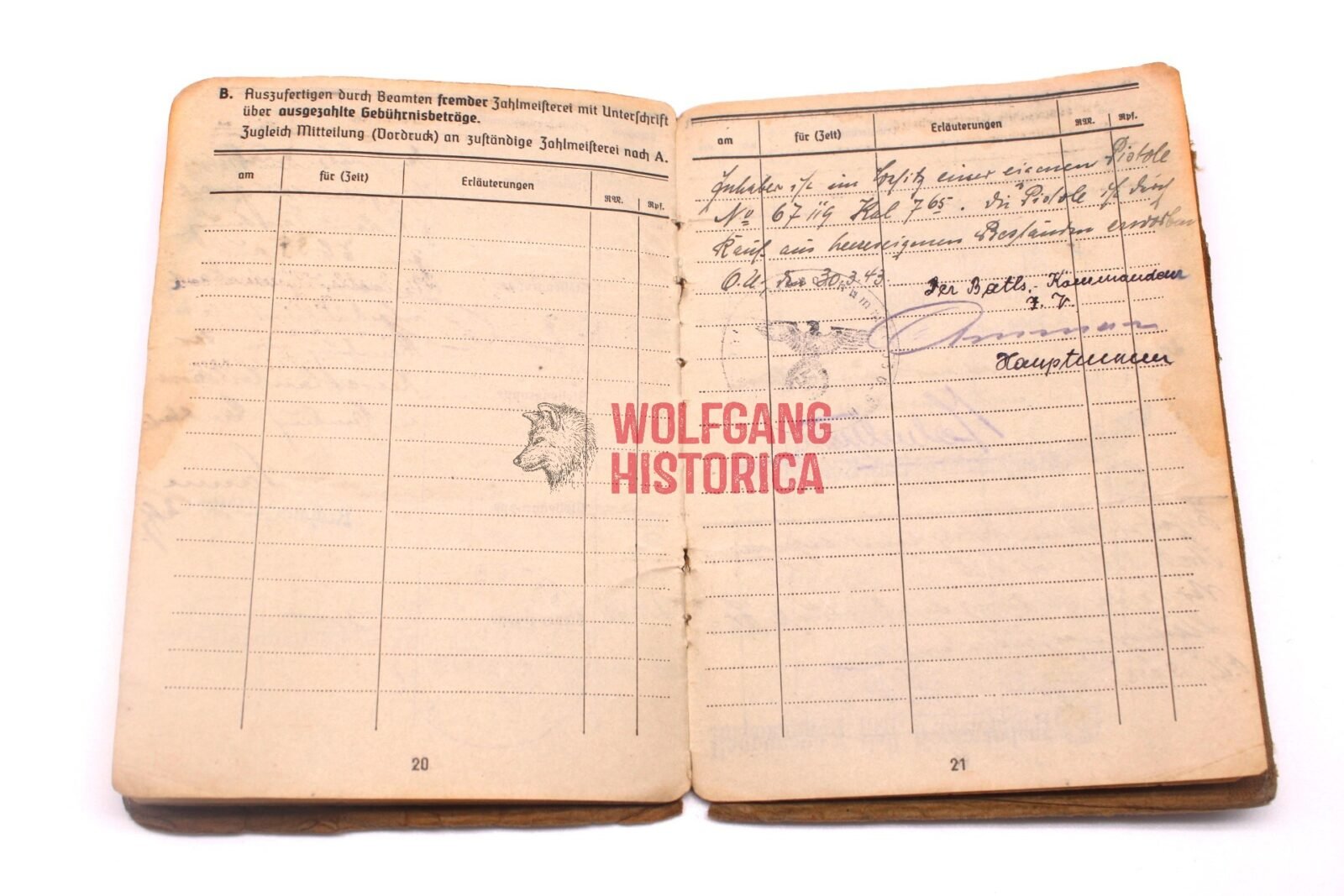 • He was in possession of an own Pistol (Nr. 67119, kal. 7.65 mm).