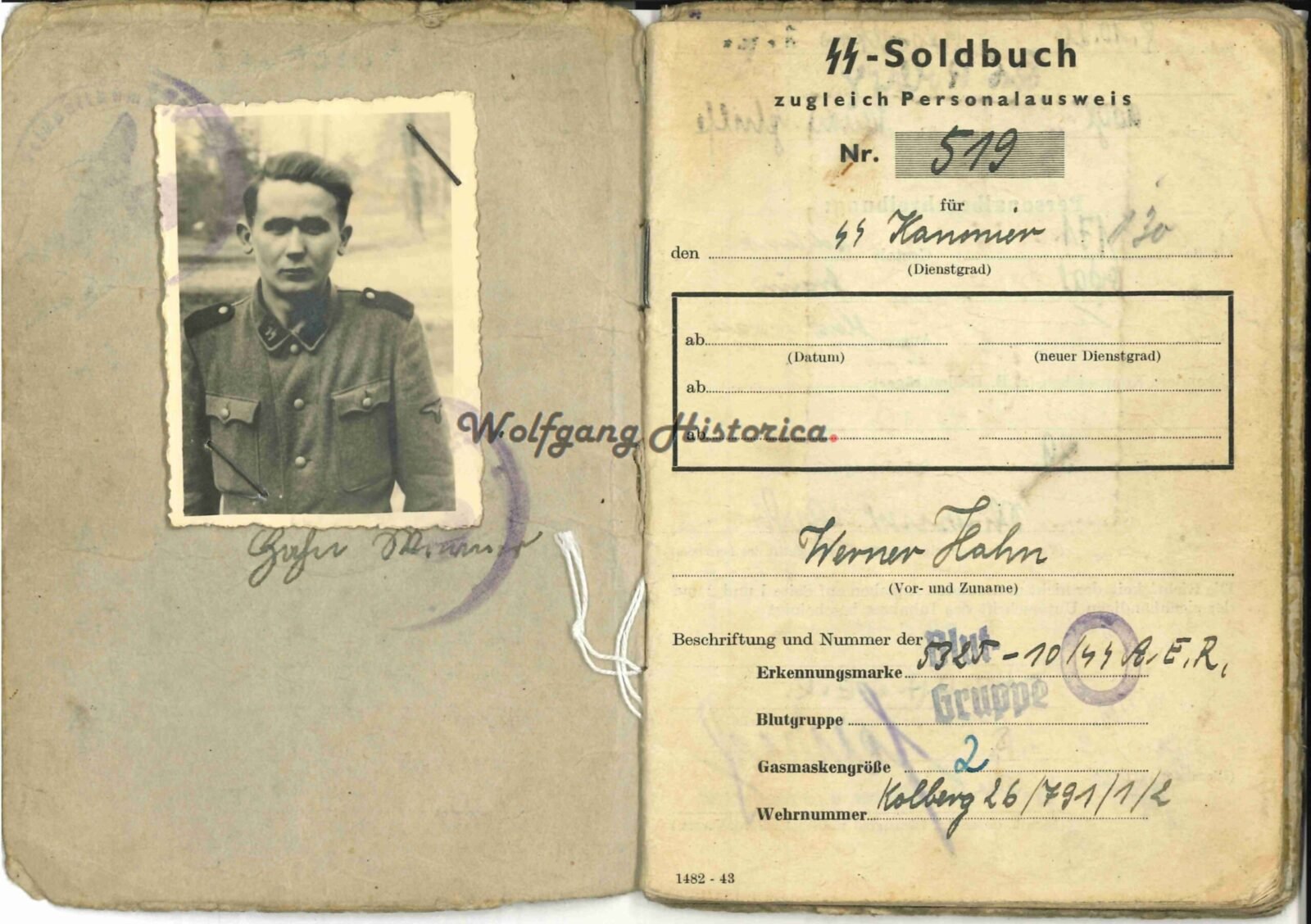 Original Soldbuch of SS-Kanonier Werner Hahn, who served with the SS-Panzer-Artillerie-Regiment 12 & SS-Werfer-Abteilung 12 of the 12. SS-Panzer-Division “Hitlerjugend”. Complete with a photo. He likely was captured during the Battle of Normandy since the last entry in the Soldbuch is from June 1944.