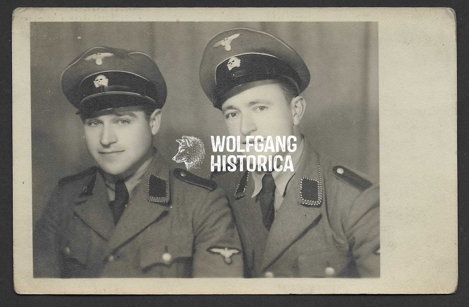 Original Studioportrait of 2x SD (Sicherheitsdienst) Personnel. Postcardsize. Condition as seen.