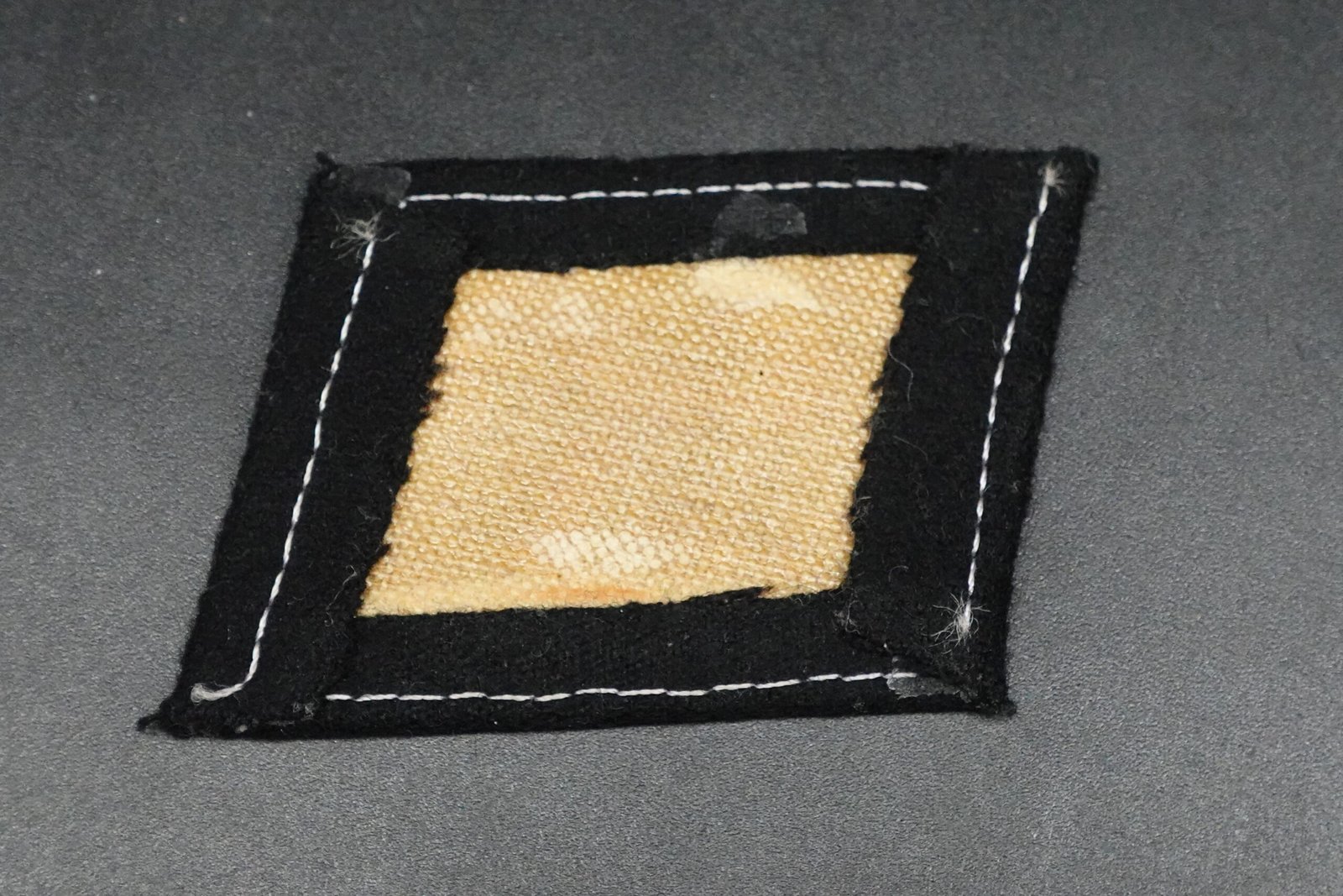 Original Dachau Waffen-SS “Langemarck” Collar tab to be worn by the soldiers of the 6. SS-Freiwilligen-Sturmbrigade “Langemarck” & 27. SS-Freiwilligen-Grenadier-Division “Langemarck” (flämische Nr.1). Collar tab features a light-brown colored buckram backing. Condition as seen.