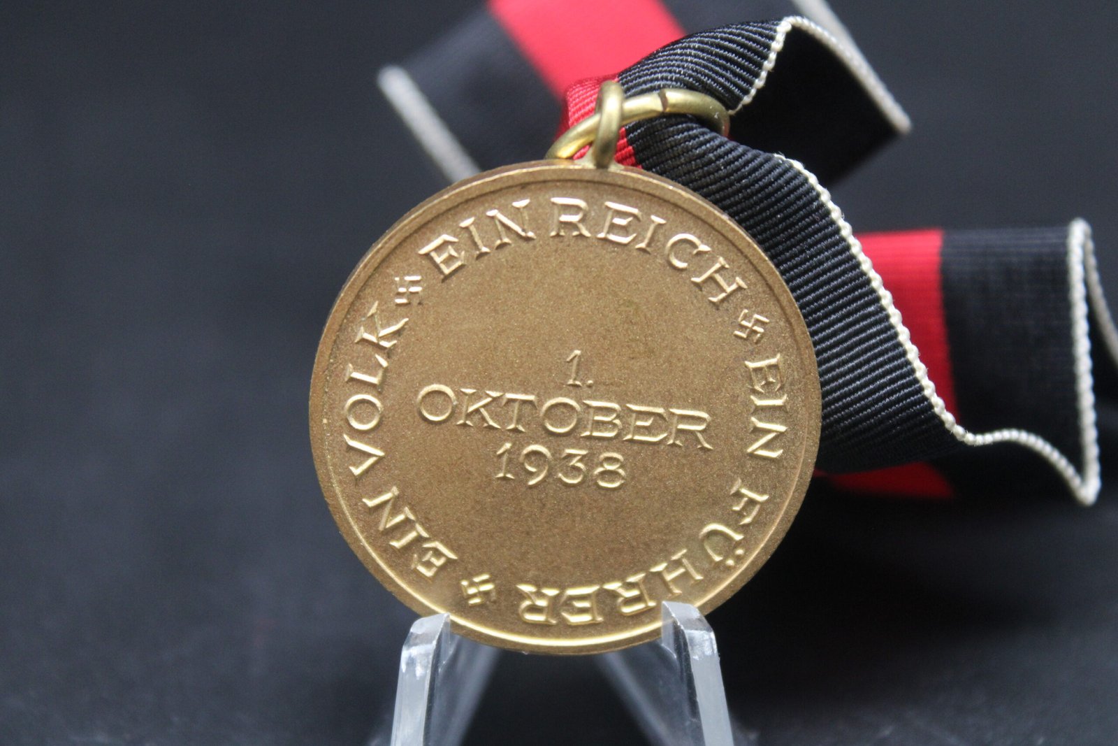 Original Medaille zur Erinnerung an den 1. Oktober 1938 (1 October 1938 Medal also known as Sudetenland Medal) awarded to civilians and military personnel who took part in the annexation of the Sudetenland. Medal complete with ribbon. Near Mint! Condition as seen.