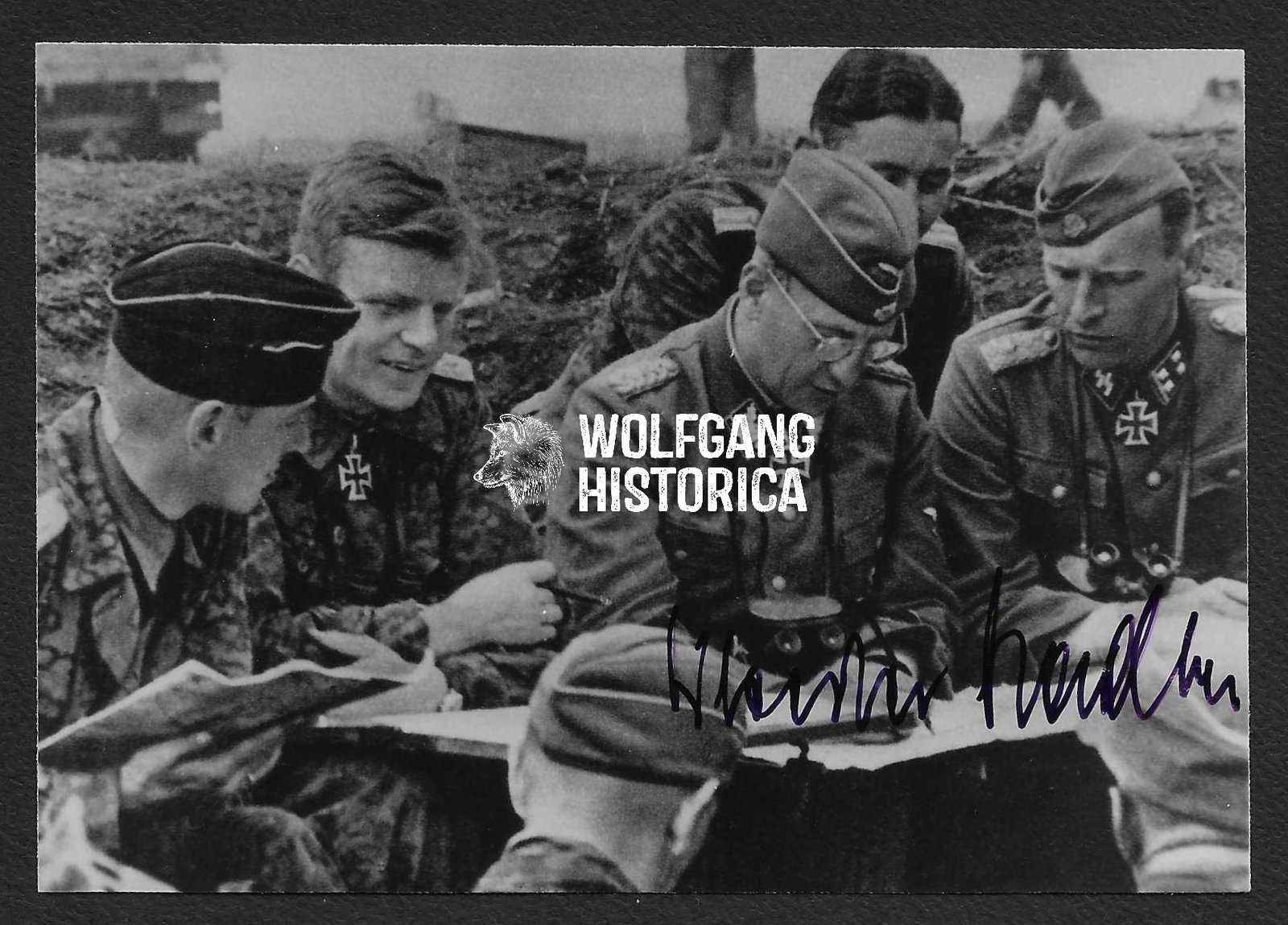 Original Postwar Signature on a Postwar Photo of Sylvester Stadler. SS-Oberführer Sylvester Stadler (24.04.1911 † 25.05.1995) earned the Ritterkreuz on April 6, 1943 as SS-Sturmbannführer und Kommandeur of the II. Bataillon/ SS-Panzer-Grenadier-Regiment 4 “Der Führer”, the Eichenlaub on September 16, 1943 as SS-Obersturmbannführer und Kommandeur of the SS-Panzer-Grenadier-Regiment 4 “Der Führer” of the 2. SS-Panzer-Division “Das Reich“, the Nahkampfspange in Gold on December 12, 1943 with the SS-Panzer-Grenadier-Regiment 4 “Der Führer” and the Schwertern on May 6, 1945 as SS-Oberführer und Kommandeur of 9. SS-Panzer-Division “Hohenstaufen”.
