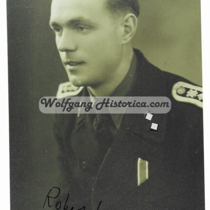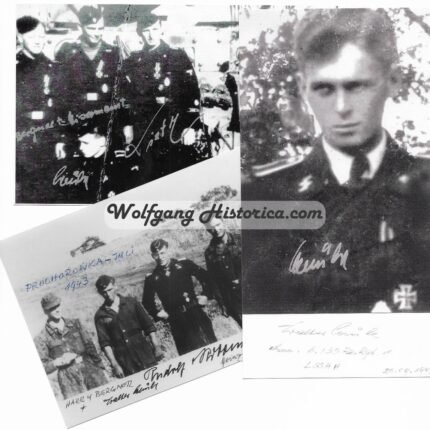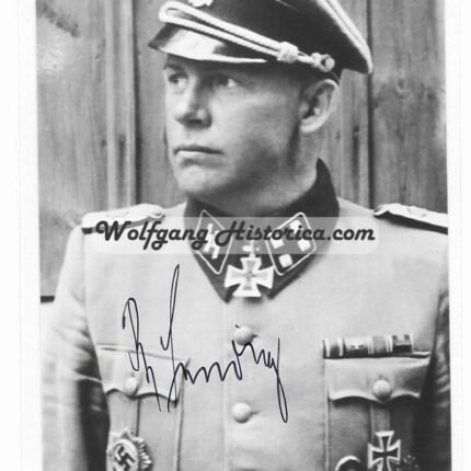 Original Postwar Signature on a Postwar Photocopy of Theodor “Teddy” Wisch. SS-Brigadeführer und Generalmajor der Waffen-SS Theodor “Teddy” Wisch (13.12.1907 † 11.01.1995) earned the Ritterkreuz on September 15, 1941 as SS-Sturmbannführer und Kommandeur of the II. Bataillon/ “LSSAH”, the Eichenlaub on February 12, 1944 as SS-Brigadeführer und Kommandeur of the 1. SS-Panzer-Division “LSSAH” and the Schwertern on August 30, 1944 as SS-Brigadeführer und Generalmajor der Waffen-SS of 1. SS-Panzer-Division “LSSAH”. Good condition. Measuring: Postcardsize.