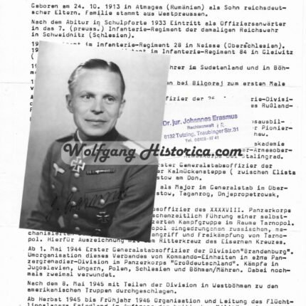 Scarce TN-Unterführer-Ausweis (Technische Nothilfe) (‘Technical Emergency Help NCO ID’) (Nr. III/206) of Fritz Krüger, who was a Zugwachtmeister der TN with TN-Abteilung 39 (II-Bereitschaft). The Bereitschaftdienst was used for readiness service used for aid during storms and natural disasters and alter used in war casualty relief. The ID was authorized on May 10, 1944 in Eichterfelde, bearing the signature (Oberst Schröder ?) of Der Landesführer der Technischen Nothilfe of Landesgruppe III, Berlin-Mark Brandenburg. Complete with a stunning photo in which he wears a collar tab “III/4”, meaning “Landesgruppe III (Berlin-Mark Brandenburg), Ortsgruppe 4 (Eberswalde). Interestingly, on the back, the ID bears two ‘Sichtmarke’ (missing in many cases) and a 6th rule was added giving him the right to wear a sidearm along with his uniform!