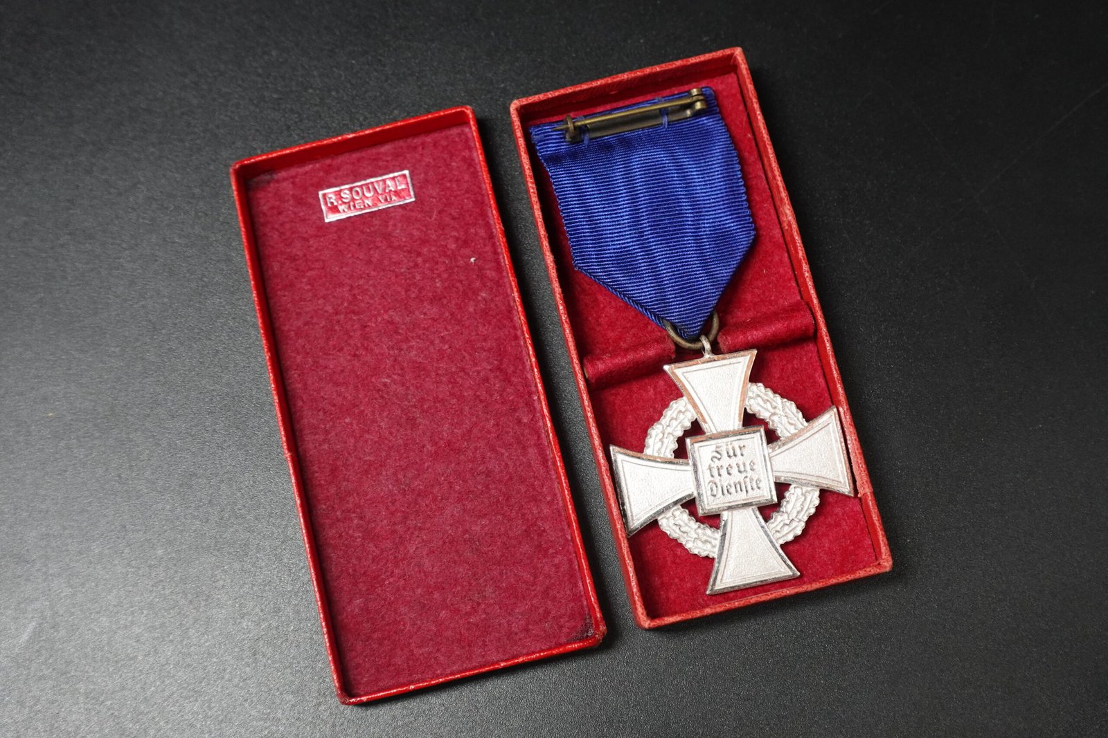 Original Treudienst-Ehrenzeichen für 25 Jahre (25 Years Loyal Service Award) with casing, maker marked with Rudolf Souval, Wien! NEAR MINT. Condition as seen.