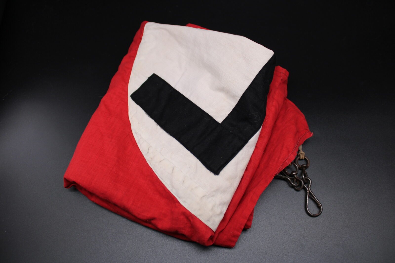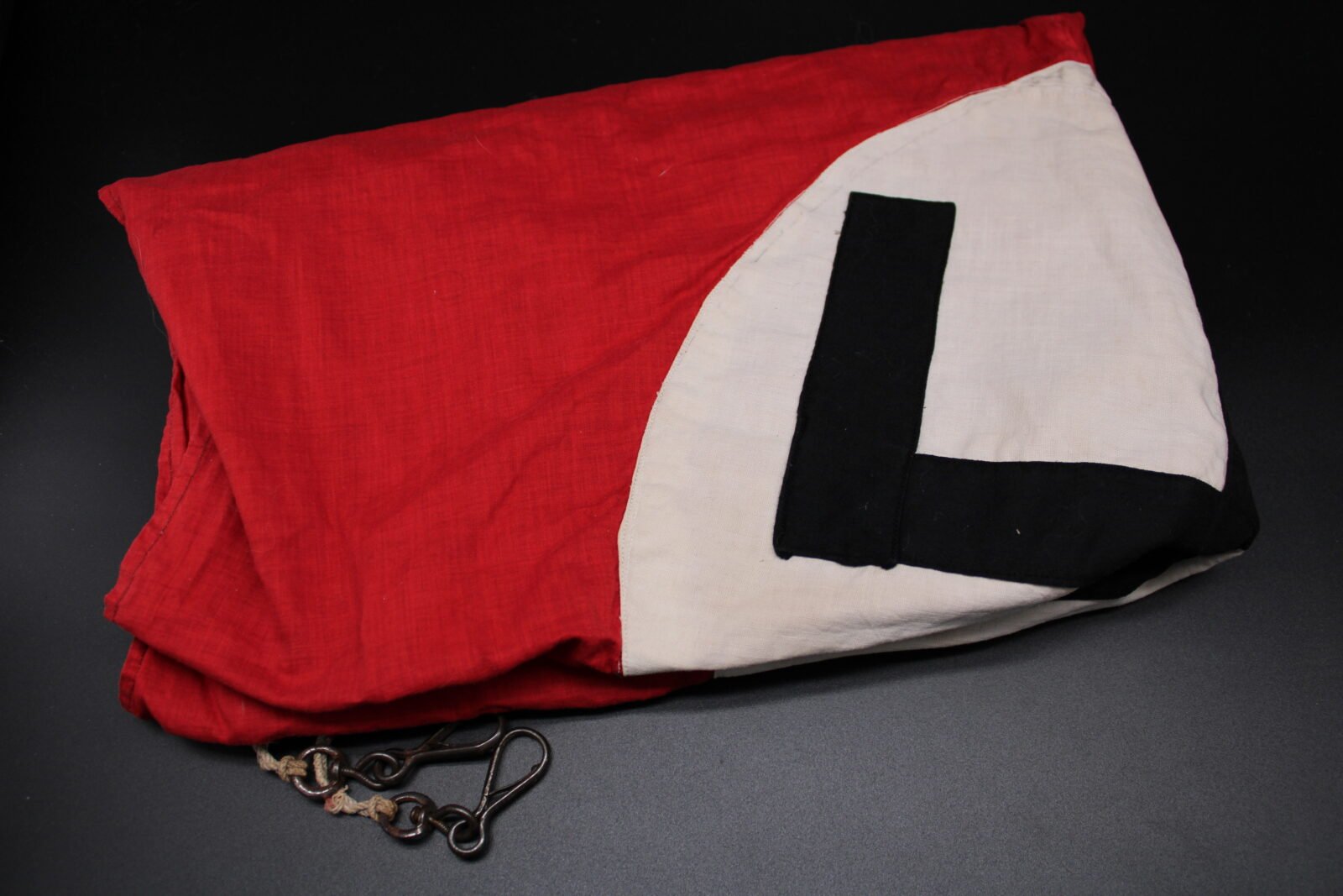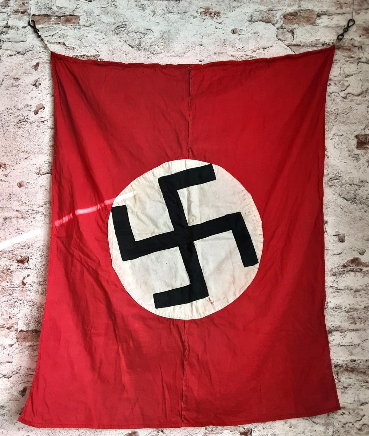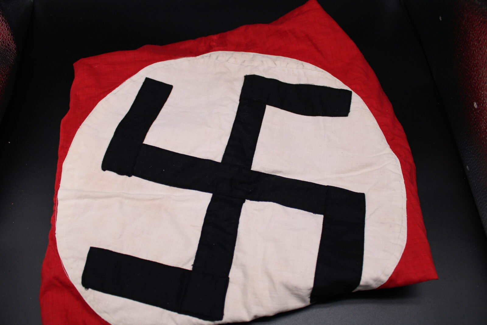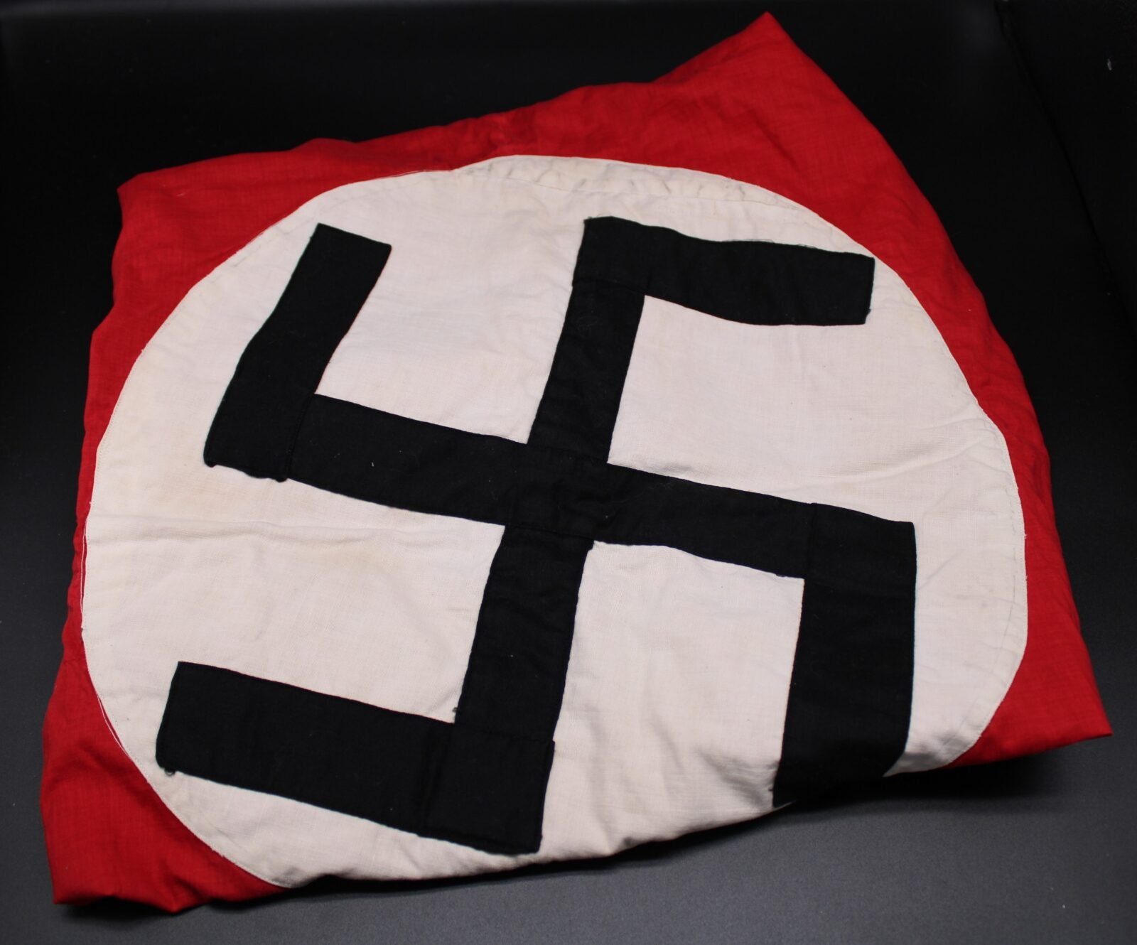 Original (very) early NSDAP Flag, measuring: 77x90cm. Swastika construction made from multiple pieces. Condition as seen,