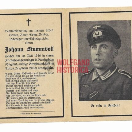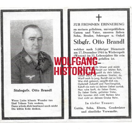 Waffen-SS Death card for Unterwachtmeister der SS-Polizei Felix Herzog, who was Killed in Action on December 5, 1941 on the Eastern Front. He earned the EK2, Infanterie-Sturmabzeichen & Verwundetenabzeichen! He served with the 9. Kompanie/ SS-Polizei-Schützen-Regiment 3.