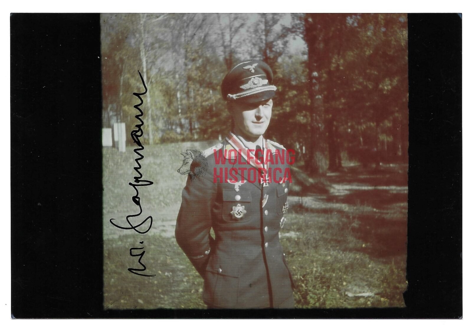 Original Postwar Signature on a Postwar Photo of Walter Grasemann. Hauptmann Walter Grasemann (03.07.1917 † 26.11.2007) earned the Deutsches Kreuz in Gold on March 19, 1942 as Leutnant in the III. Gruppe/ Kampfgeschwader 27 “Boelcke” and the Ritterkreuz on October 9, 1943 as Oberleutnant und Staffelkapitän in the 9. Staffel/ Kampfgeschwader 27 “Boelcke”. Good condition. Measuring: 10×15 cm.