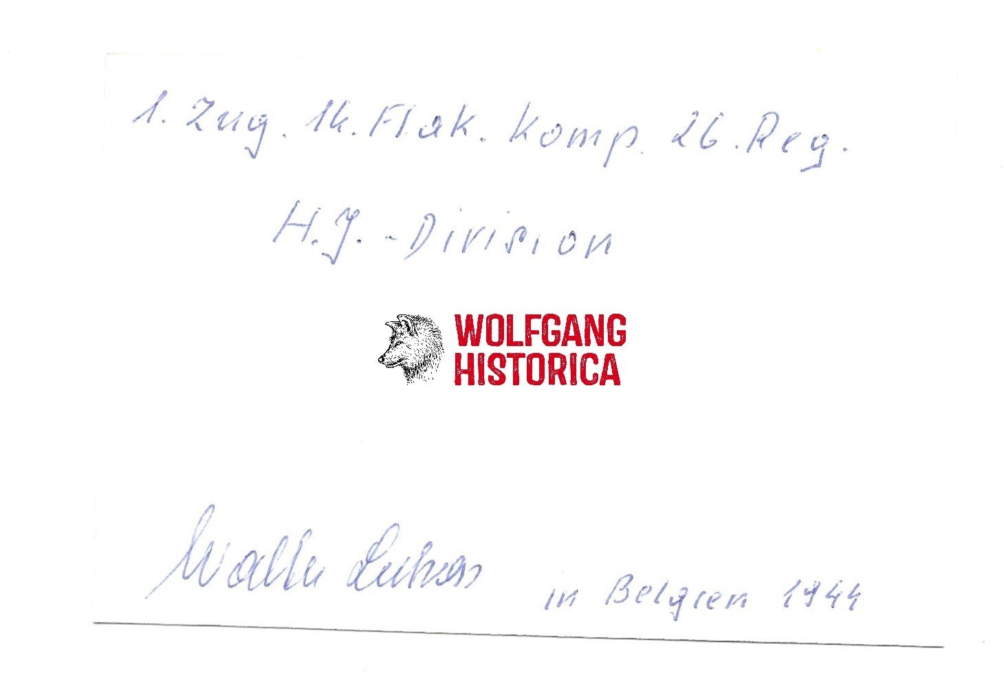 Original Postwar Signature on a Postwar Photo of Walter Lukas, Veteran of the 14. Kompanie/ SS-Panzer-Grenadier-Regiment 26 of the 12. SS-Panzer-Division “Hitlerjugend”. Signed on the reverse. Size: 6,9×10,3cm.