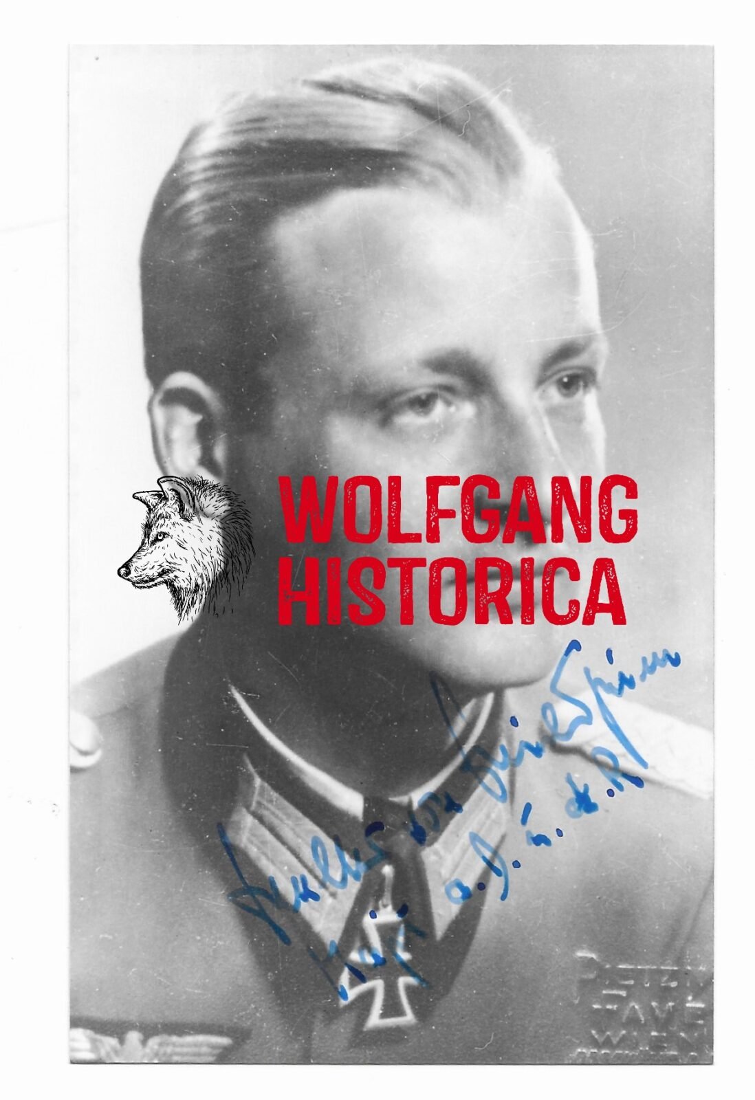 Original Postwar Signature on a Postwar Photo of Walter von Wietersheim. Major Walter von Wietersheim (29.11.1917 in Barzdorf † 19.01.2002 in Bielefeld) earned the Deutsches Kreuz in Gold on February 11, 1943 and the Ritterkreuz des Eisernen Kreuzes on May 15, 1944 as Hauptmann und Kommandeur of the II. Abteilung/ Panzer-Regiment “Großdeutschland” of the Panzergrenadier-Division “Großdeutschland”.