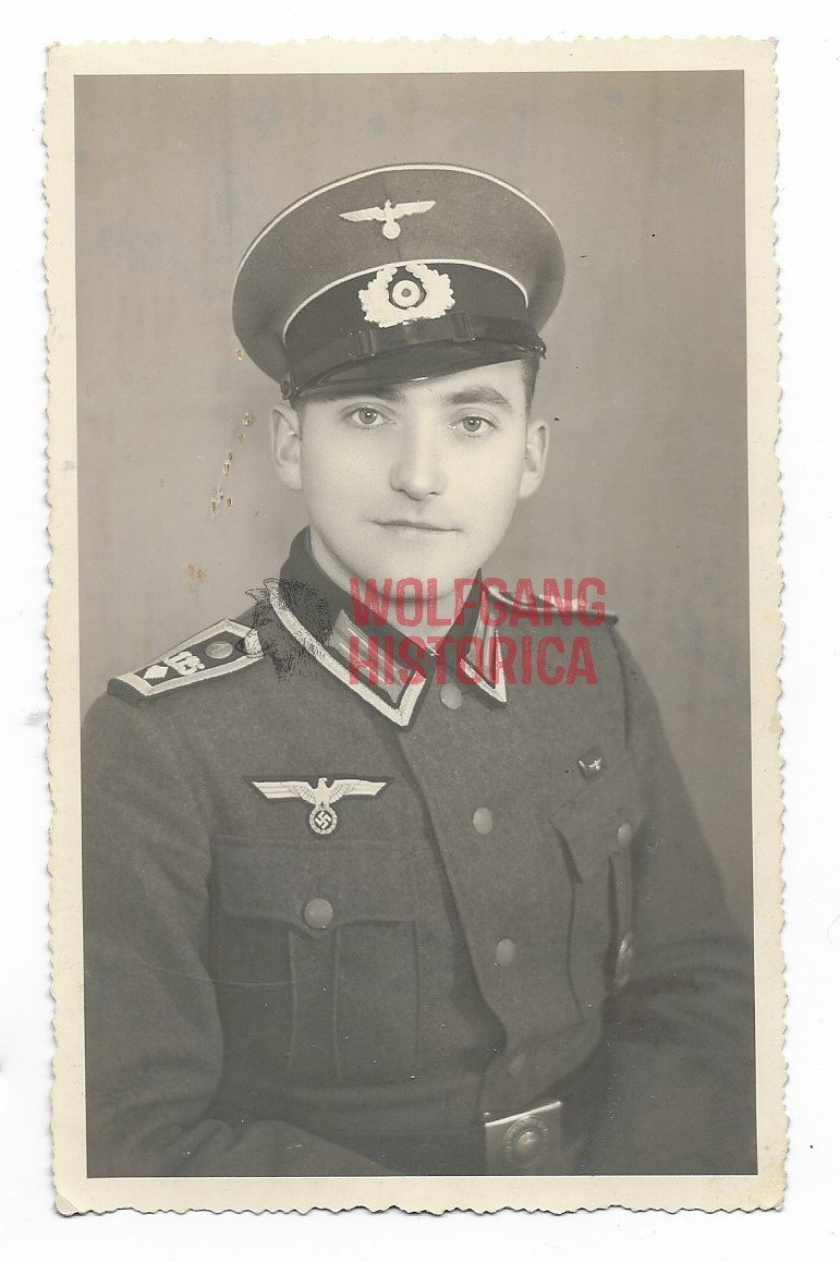 Studioportrait of Wehrmacht soldier wearing shoulderboards with “115”. Likely Infanterie-Regiment 115? Postcardsize.